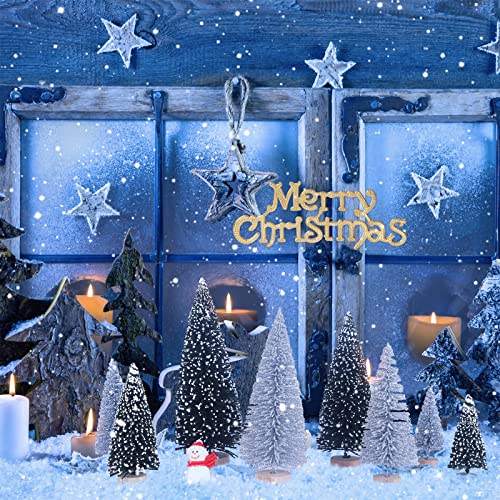 UNIPRIMEBBQ Mini Miniature Christmas Pine Tree Bottle Brush Trees Wooden Bases Tree for Your Village Desktop Xmas Holiday Party (Silver/Green 30pcs)