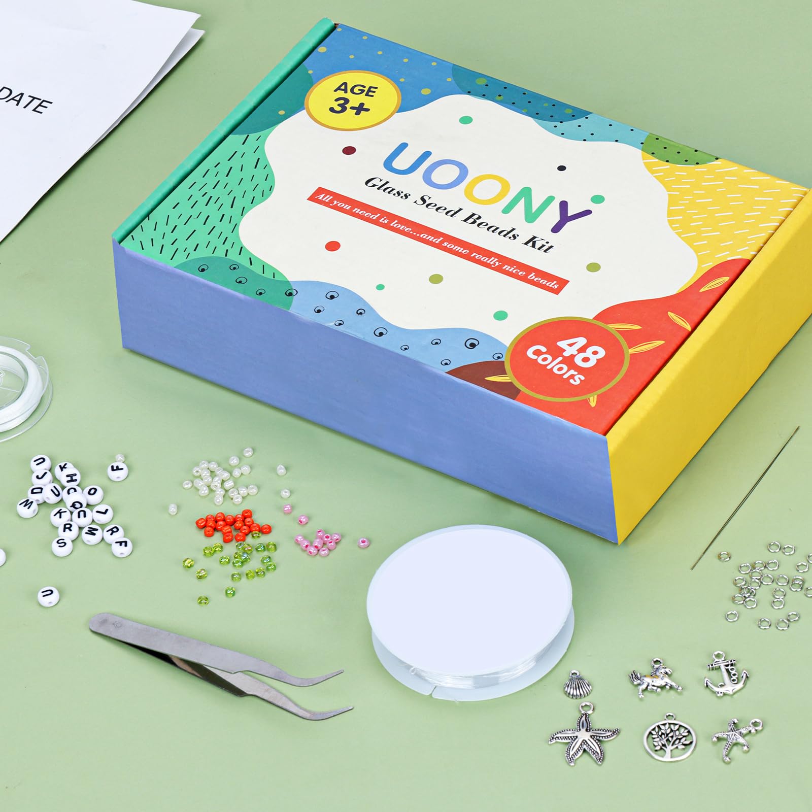 UOONY 16800pcs 48 Color Glass Seed Beads for Jewelry Making, 3mm Small Beads for DIY Projects