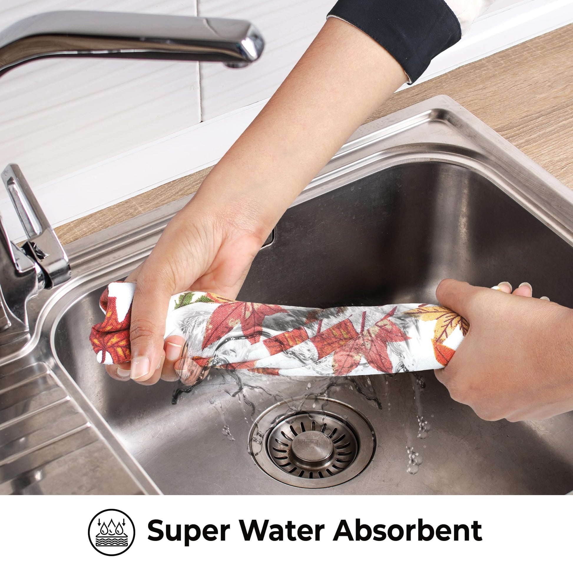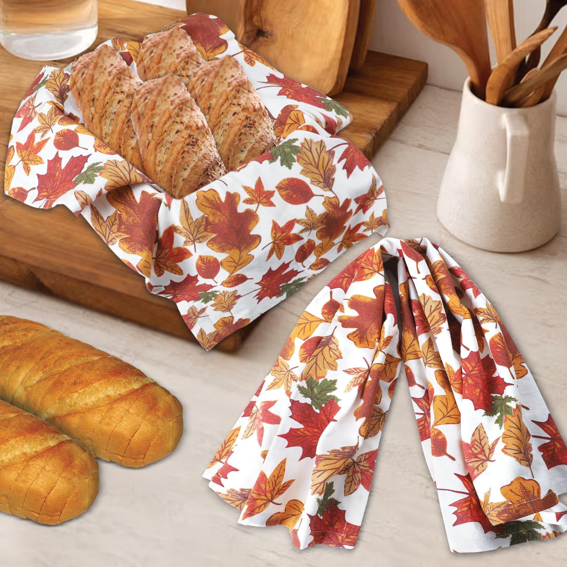 Urban Villa Fall Kitchen Towels Harvest Leaves Print Dish Towels Set of 6 20" X30” 100% Cotton Highly Absorbent Quick Drying Dish Cloths & Dish Towels Thanks Giving Tea Towels with Hanging Loop
