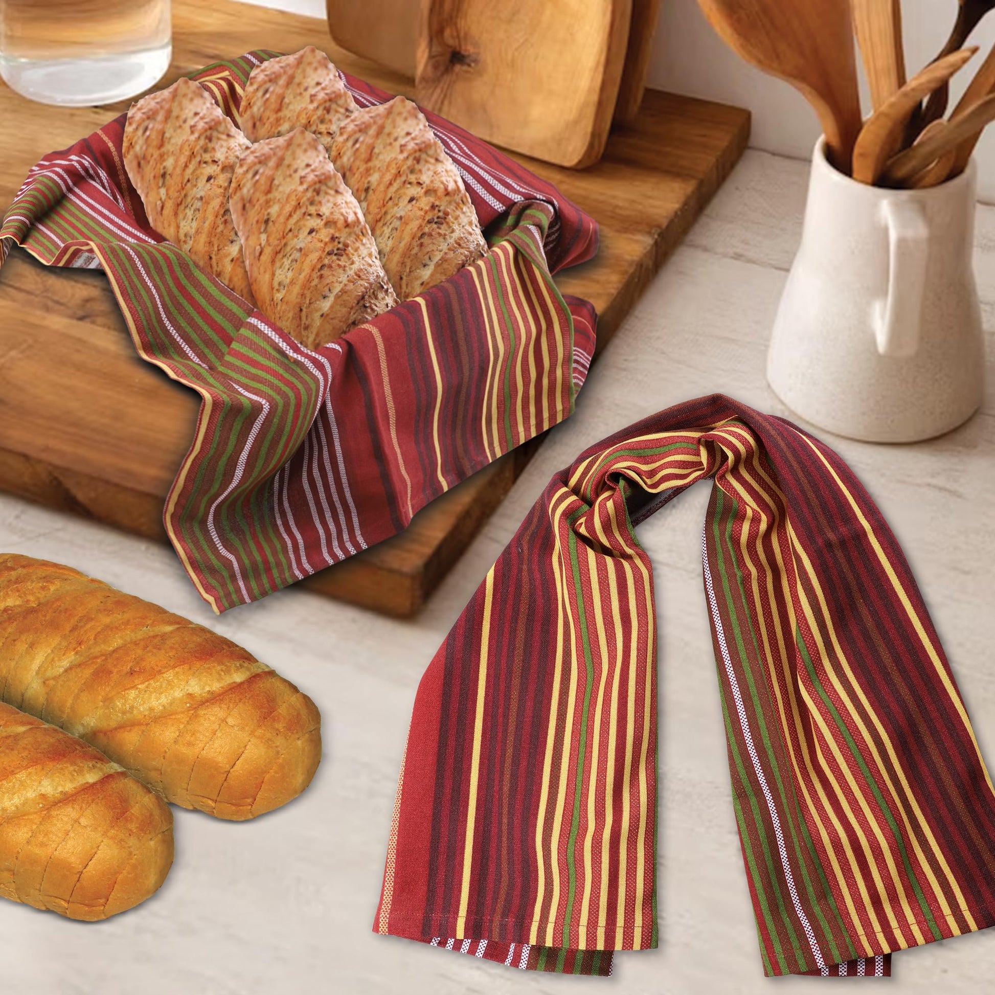 Fall Print Stripes Kitchen Towels Premium Quality 100% Cotton Harvest Dish Towels Mitered Corners Ultra Soft (Size: 20X30 Inch) Thanks Giving Highly Absorbent Tea Towels - (Set of 6)