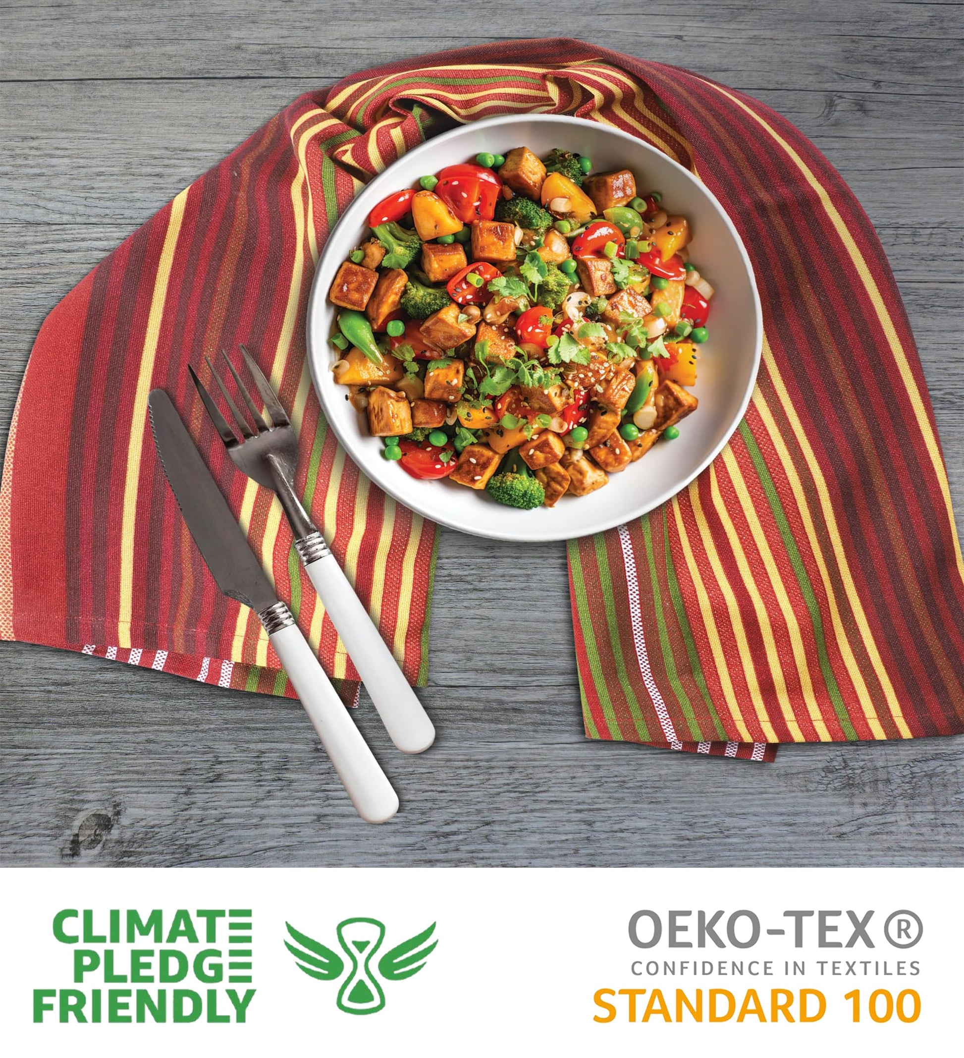 - MACHINE WASHABLE : Easy to maintain, these durable napkins and towels can be machine washed multiple times in cold water, without having their color fade.
