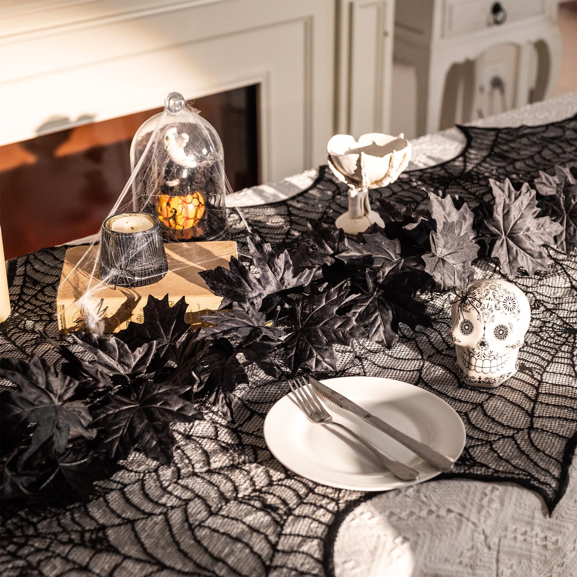 Valery Madelyn 9ft Halloween Garland with Lights, Thick Pre-Lit Light Up Black Maple Leaf Garland Halloween Decor for Mantle Fireplace Table Home Indoor
