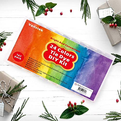 Vanstek Tie Dye Kit, 24 Colors Tie Dye Shirt DIY Fabric Dye for Women, Kids, Men, with Rubber Bands, Gloves, Plastic Film and Table Covers for Family Friends Group Party Supplies