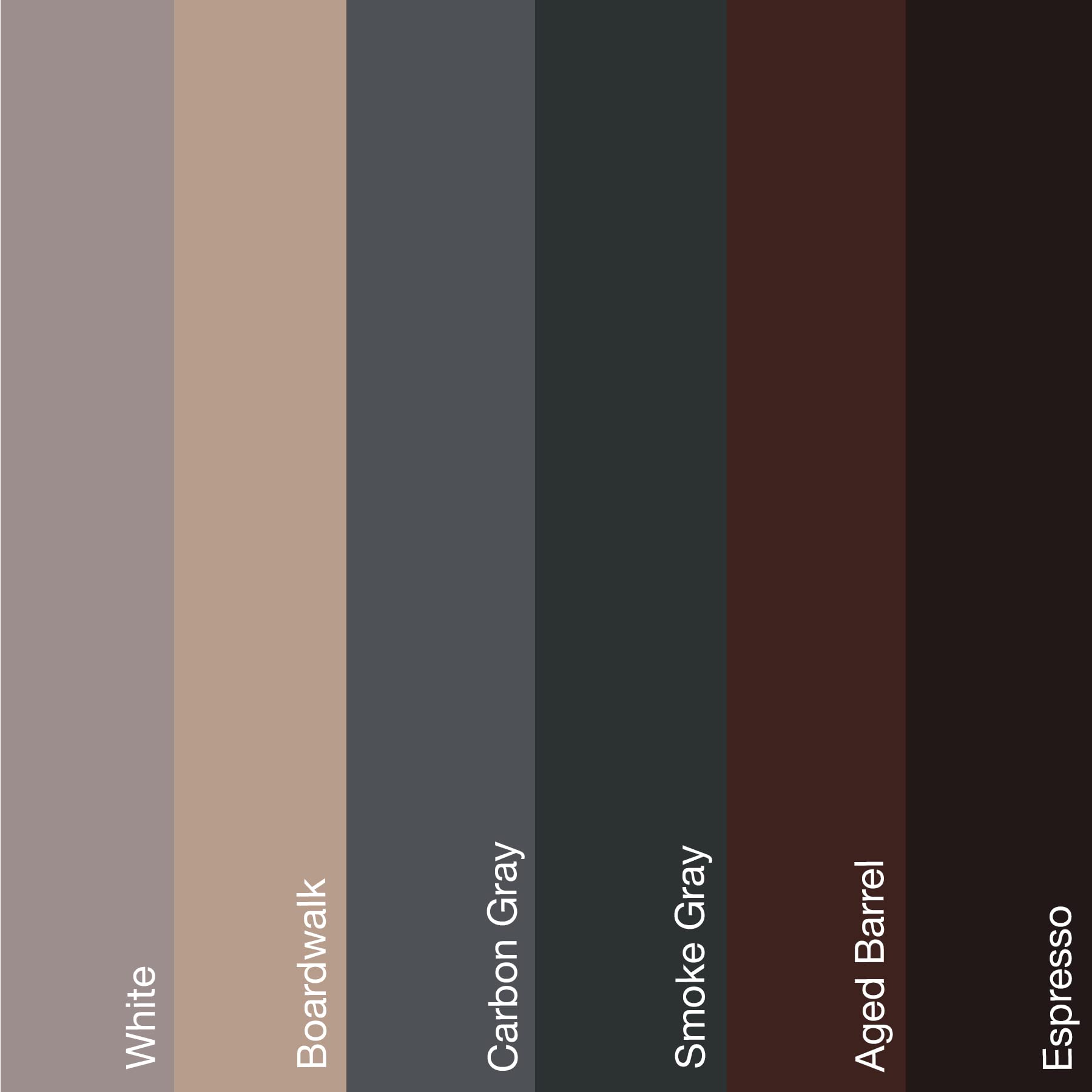 - Stain marker set includes White, Boardwalk, Carbon Gray, Smoke Gray, Aged Barrel, Espresso