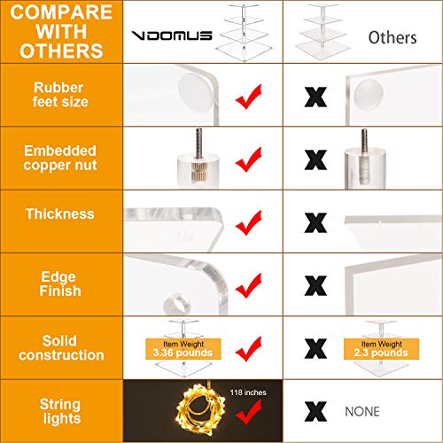 Vdomus 4 Tier Acrylic CupCake Stand Pastry Stand with LED String Lights Dessert Tree Tower Cake Pyramid for Birthday Wedding Party Babyshower Christmas, Holds up to 50 Cupcakes (Warm)