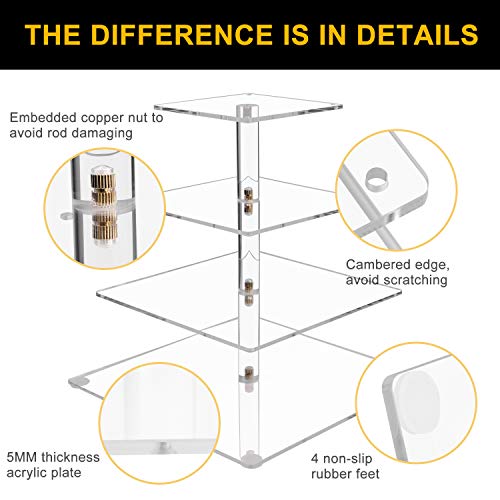 - Solid construction Acrylic cupcake holder stand: The pastry rack is made of 5 mm thick acrylic material, by using Acrylic Rod with Screws instead of Tube to make this cupcake stand straight and stable. Embedded copper nut in the middle of each acrylic rod, which can perfectly protect the rod from damaging after several times’ using. This cupcake stand can hold around 52 pieces 2.5" diameter cupcakes, or 12 pounds cupcake, dessert, pastry or food, durable and stability.