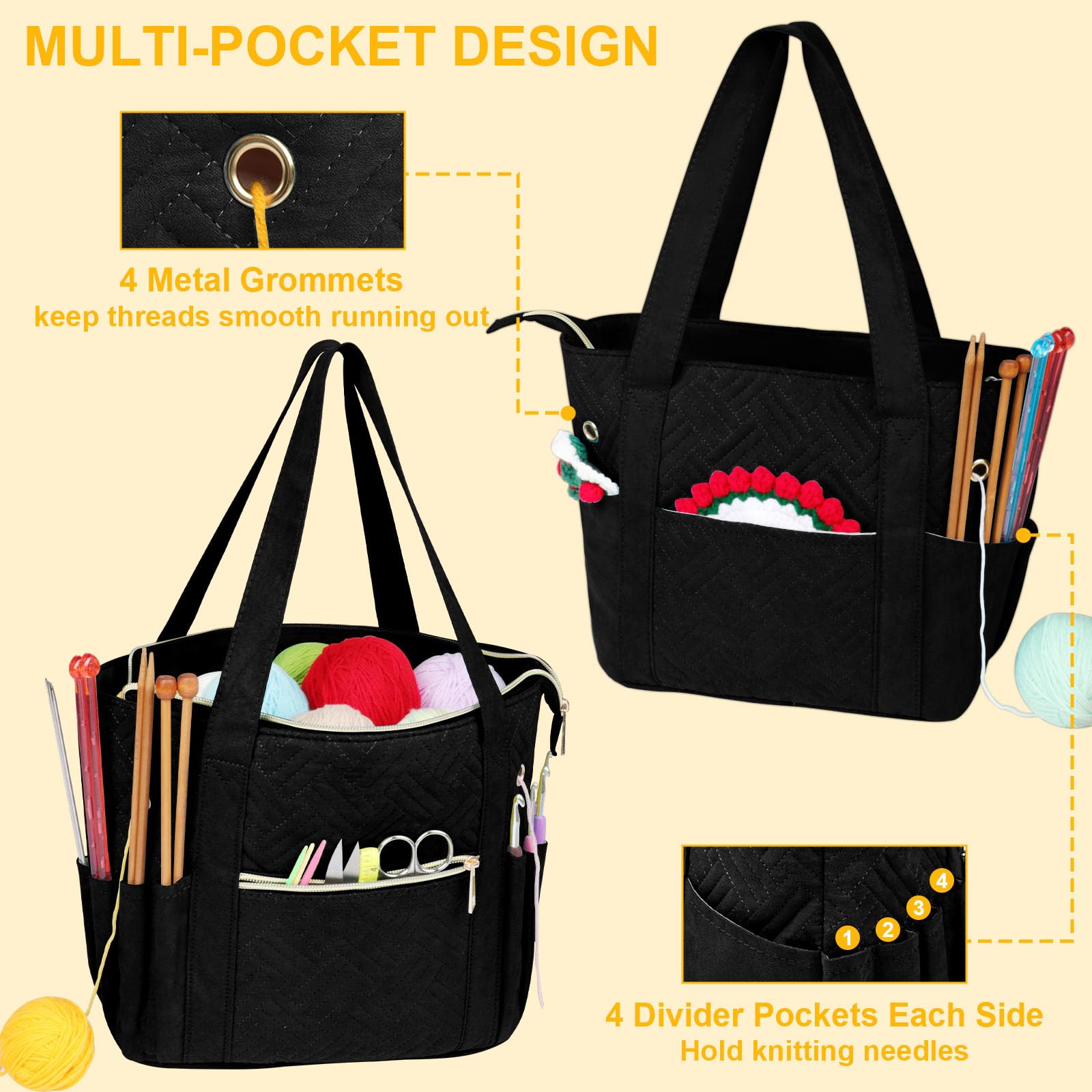 - 【Easy to Access】Veirdro yarn holder bag is great with the wide open design. The zipper pouch for crochet accessories could hold knitting and crochet kit supplies, crochet yarn, knitting accessories, and easily access what you need.