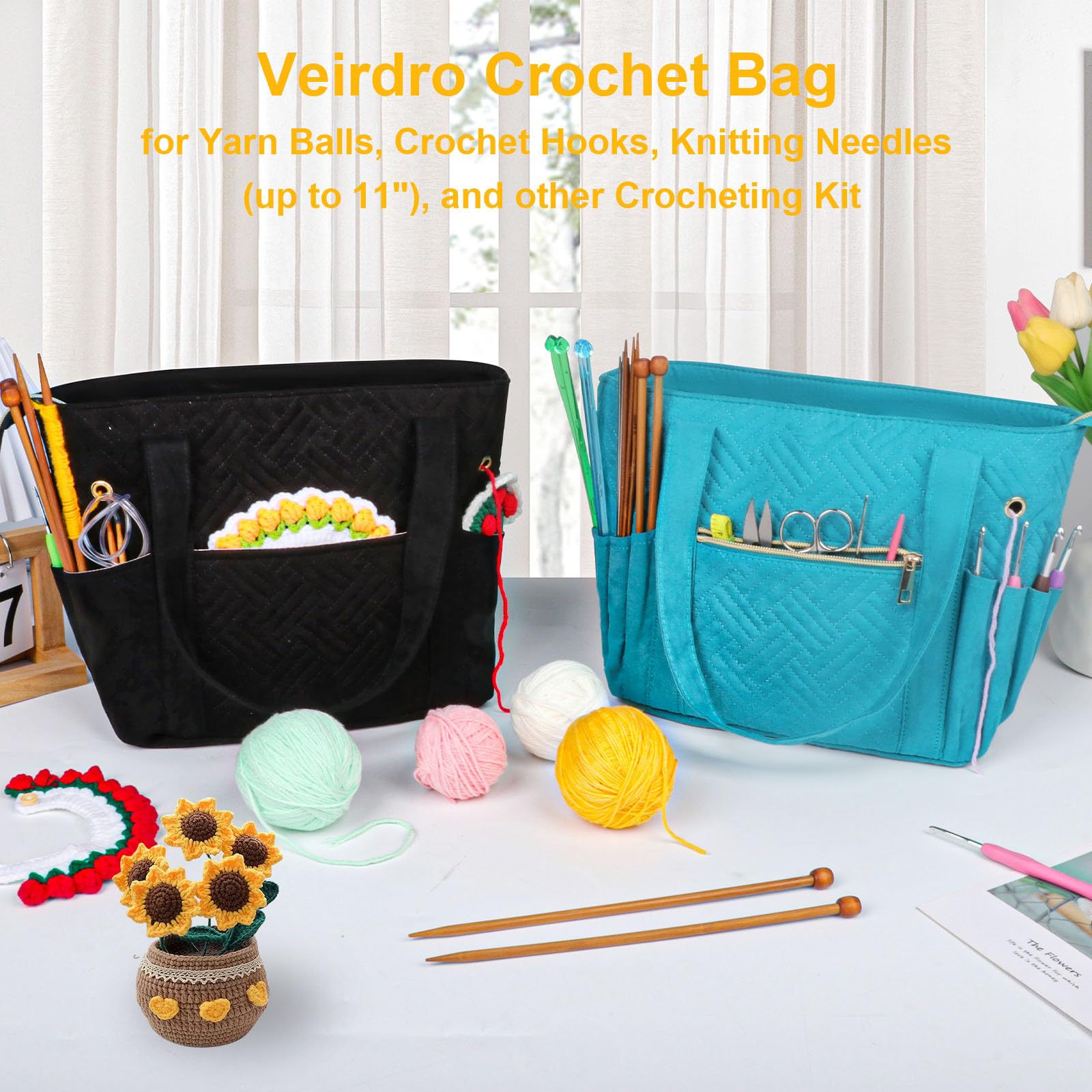 - 【Convenient Design】Veirdro crochet bag organizer for women has long handles, you can hang it on your shoulder or arm, or carry it by hand. The knitting bag can help you store crochet hook set, crochet needles, and help you save more storage space.