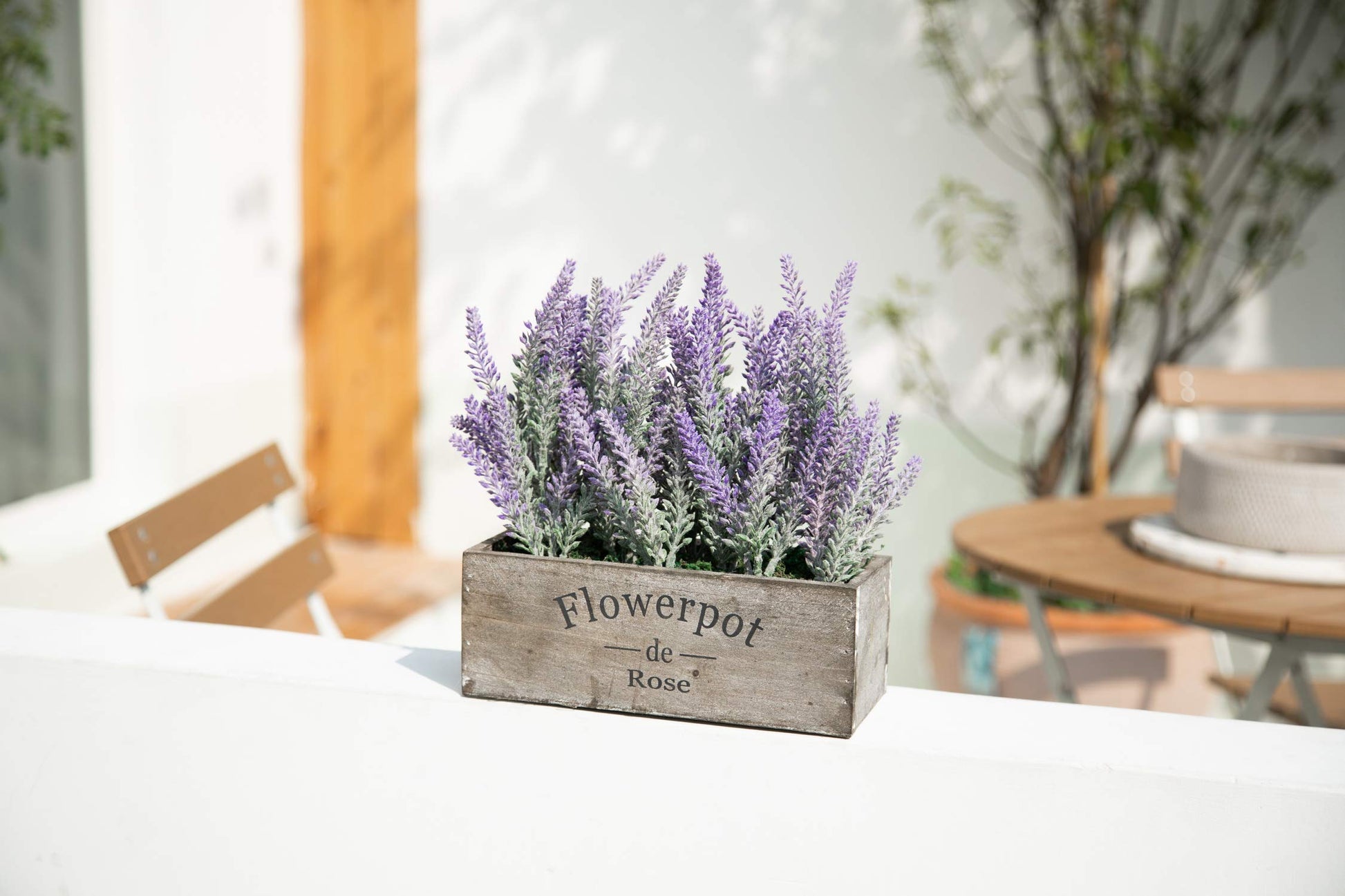 - [Enhance Living Quarters]Velener Lavender Plants not only add a touch of elegance to any room, but also provide a refreshing and soothing scent that can lift your mood. Its design allows it to blend seamlessly with any decor, making it a perfect addition to your home or office. Plus, its durable wooden box ensures long-lasting beauty both indoors and out.