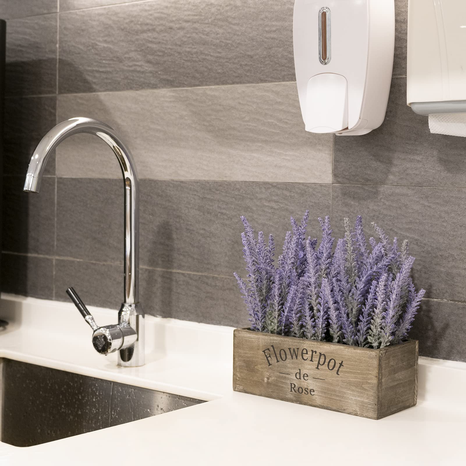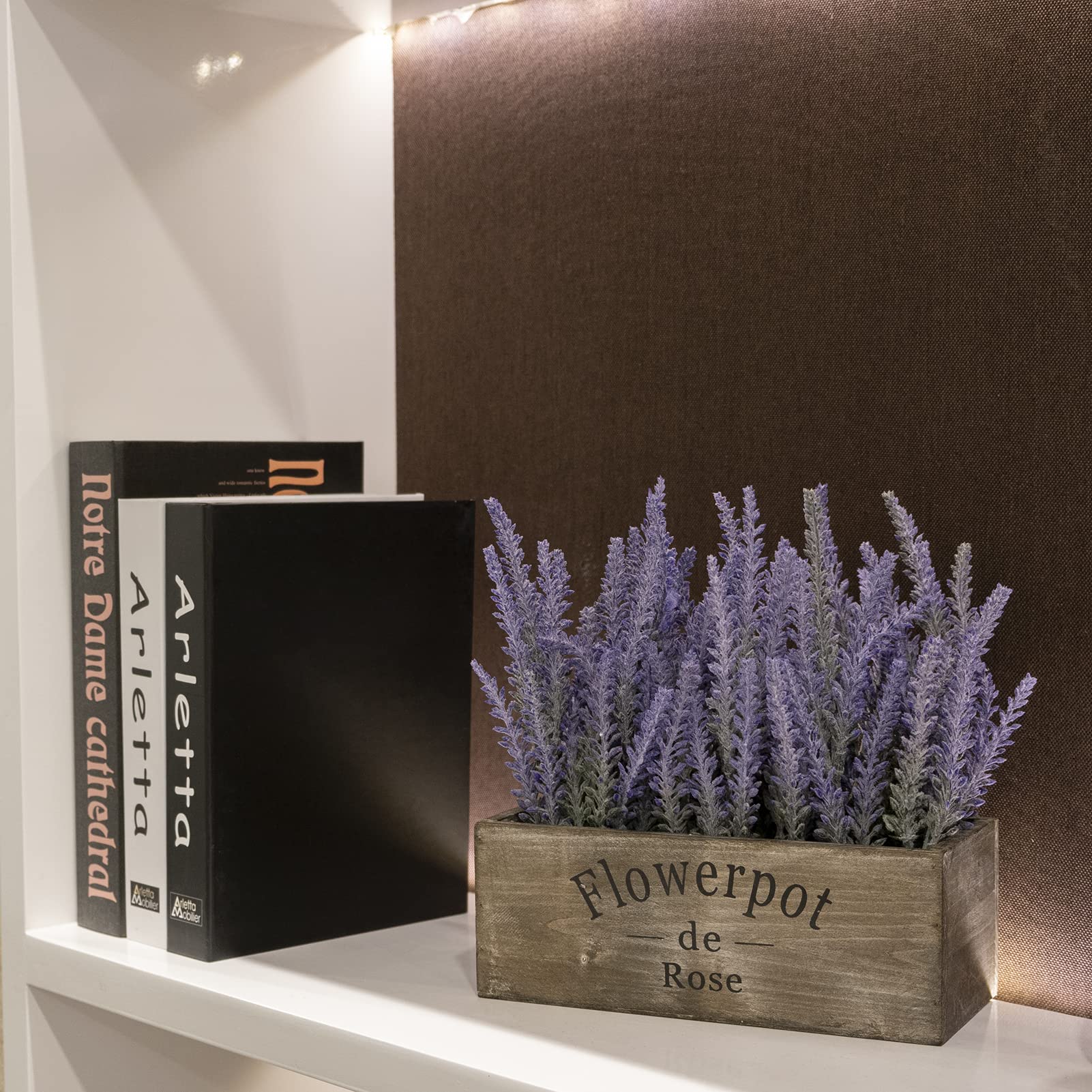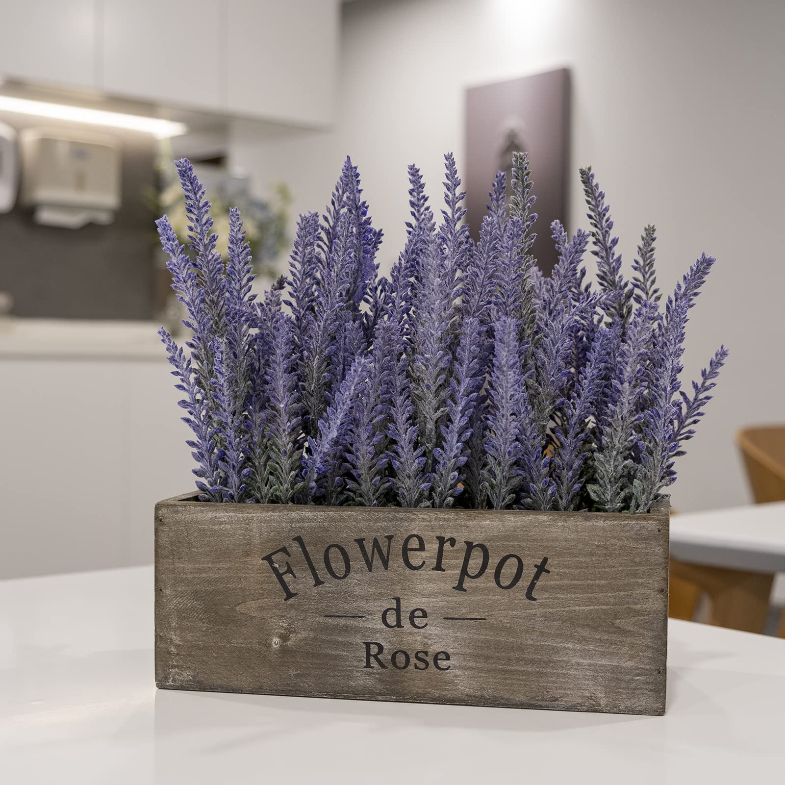 - [Versatile Decoration] Velener faux flowers come in decorative tray wooden box pot set which measures 9 x 4 x 10 inches and is an easy fit for empty spaces in and around your home. Whether you're into grunge, rustic, modern or even French country, these lavender flowers will complement your style.