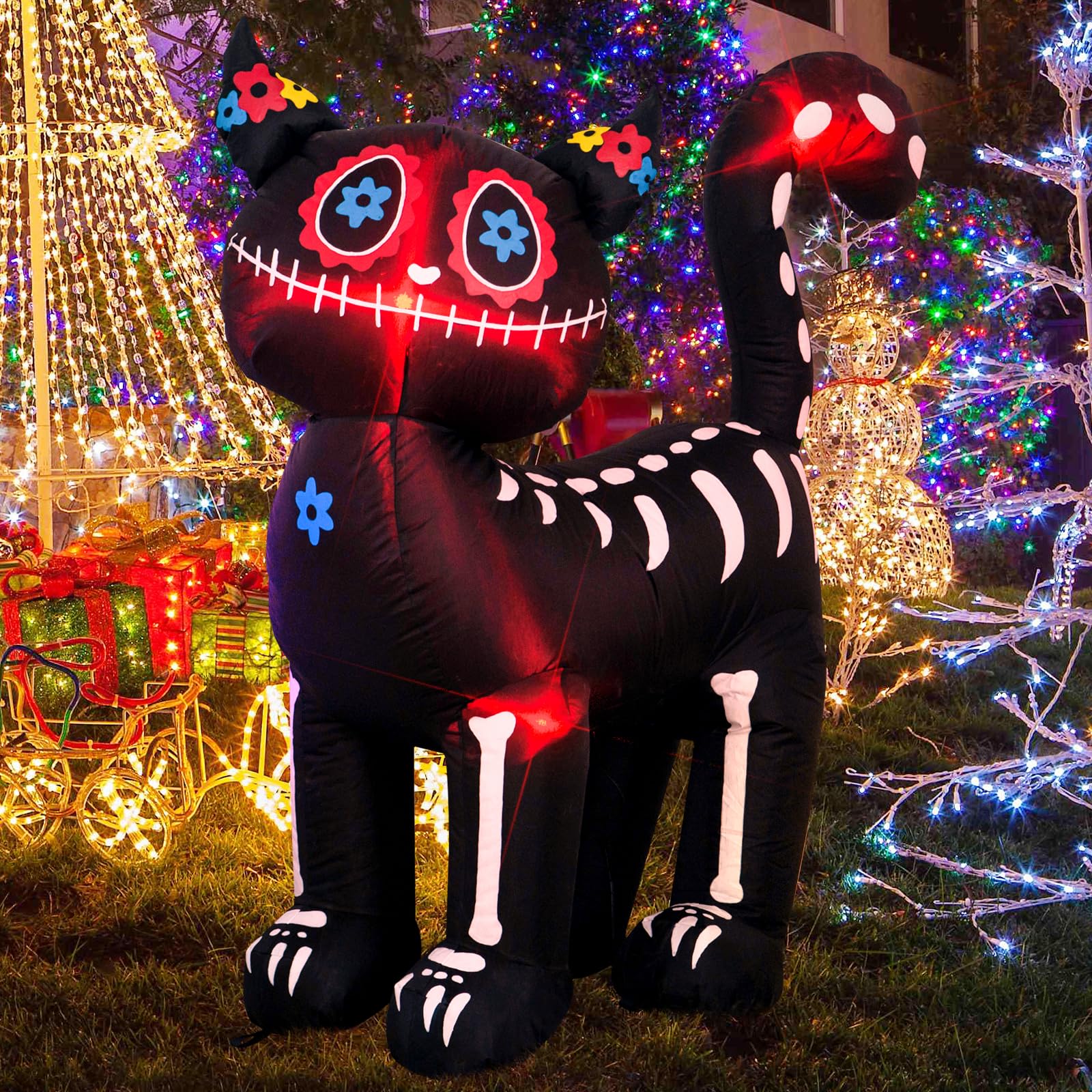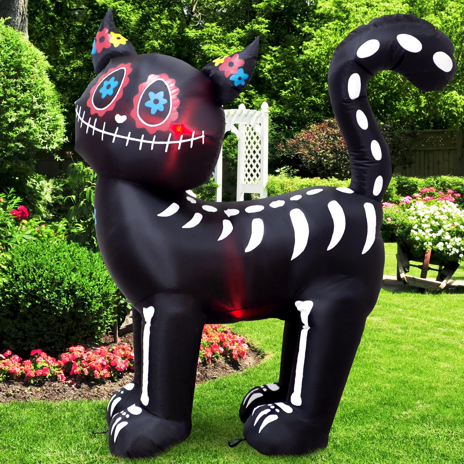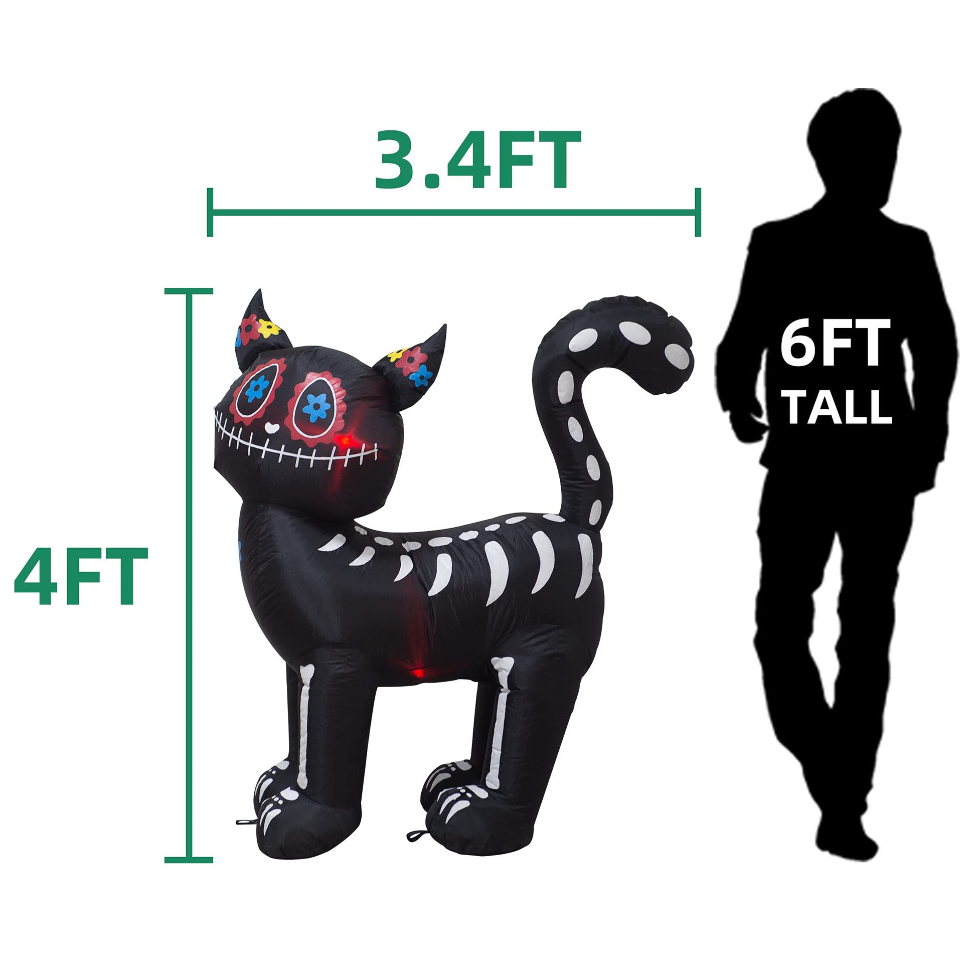 - 4Ft high Halloween Inflatable Black Cat Party Decoration for Outdoor Indoor Home Garden Family.The Black Cat interior is equipped with Red lights effects, so that the products can shine and attract attention at night.Delight all your Neighbors and Guests.