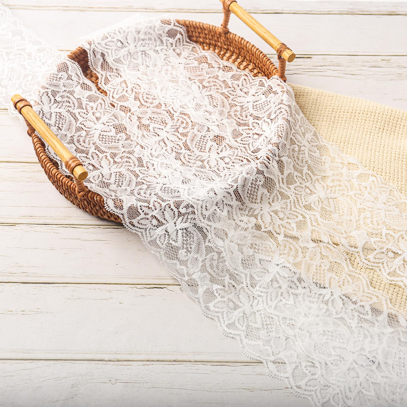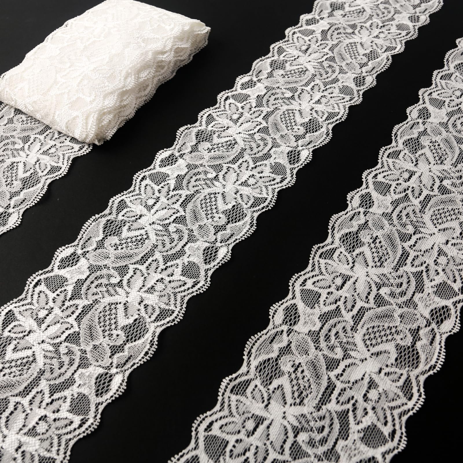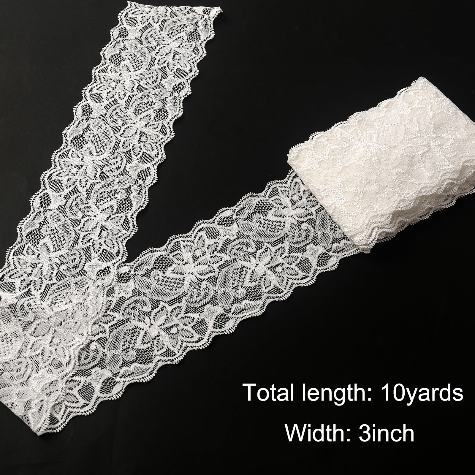 VGOODALL 3 Inch White Lace Ribbon, 10 Yards Wide Stretchy Lace Trim Elastic Floral Lace for Bridal Wedding Decoration Gift Wrapping DIY Sewing Craft Hair Bow Making