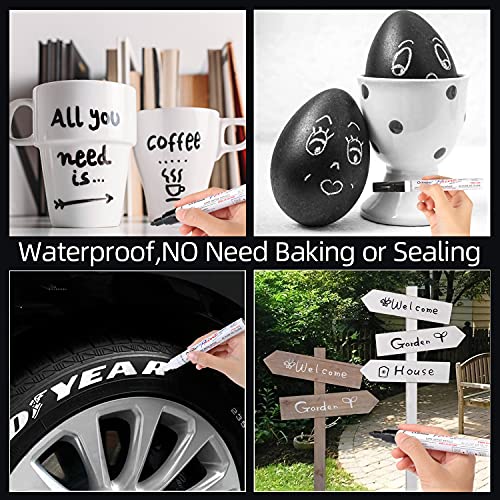 - PERSONALIZE YOUR LIFE: Eye-catching metallic shining marker pens Suitable for leave message and permanent sign.use your imagination and creativity to write on all dark and light smooth surfaces.Creating vibrant DIY Crafts,Attract Everyone's Eyes,From rock paintings to mug art and decorations.Works well on rocks, canvas, paper, stone, metal, pumpkin, egg, rubber, ceramic cup, blackboard, porcelain, wood, glass, plastic, fabric, cardstock, Leather, Tires, jar labels, shoes any solid surface.