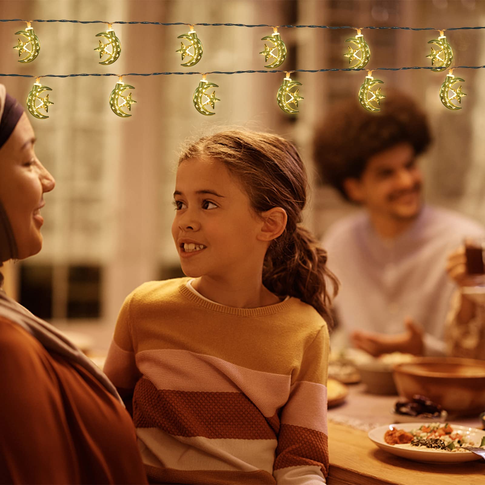 - đăEid Ramadan Lights Decorationsă10ft ramadan decoration lights with 20 LED moon lights. Each light is 1.96 inches; these ramadan lights give off a warm bright light, which will light up every specil time of your life