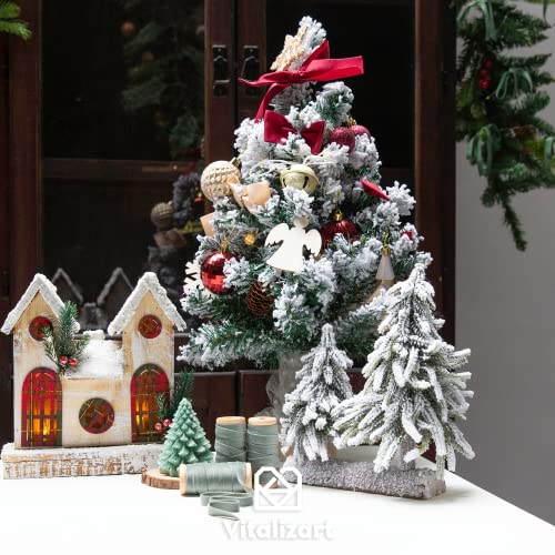 Vitalizart Dusty Green Velvet Ribbon Set 3/8"" x 15Yd Wooden Spool Fabric Trim Eco-Friendly 3 Rolls * 5Yd for Christmas Wreath Decoration Handmade Craft Ornaments Gift Wrapping & Bow Making