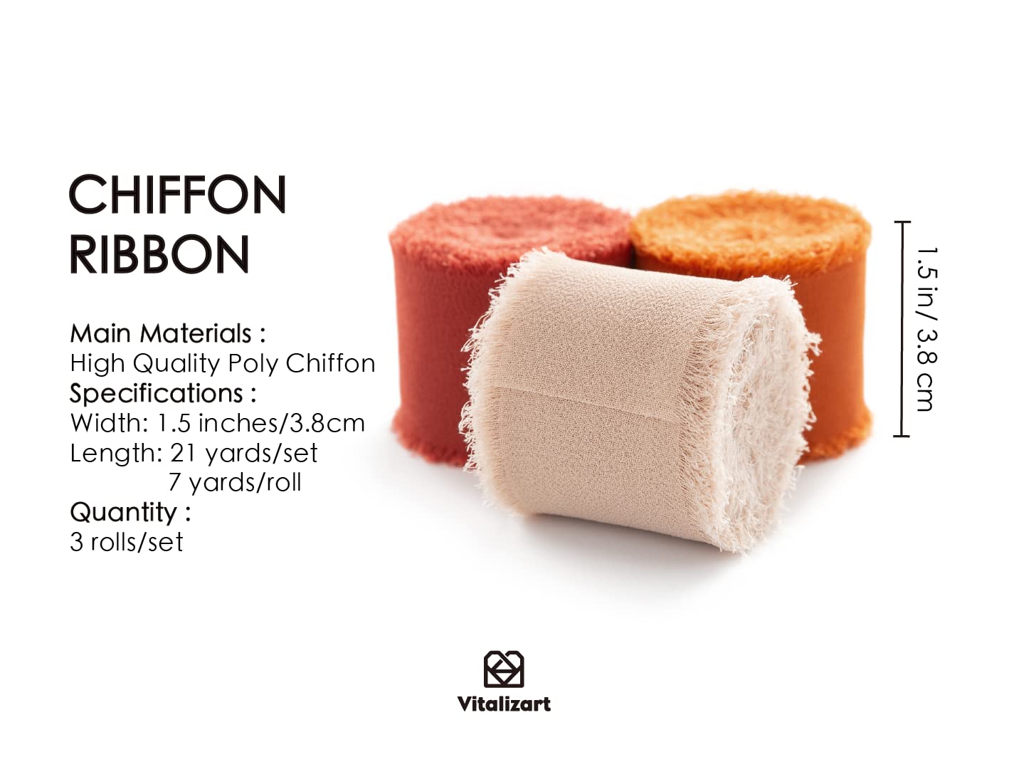 Vitalizart Fall Handmade Chiffon Silk Ribbon Fringe 1.5" x 21 Yd Terracotta Frayed Edges Ribbons for Wedding Invitations Bridal Bouquets Gifts Wrapping Crafts Holiday Party Decorations