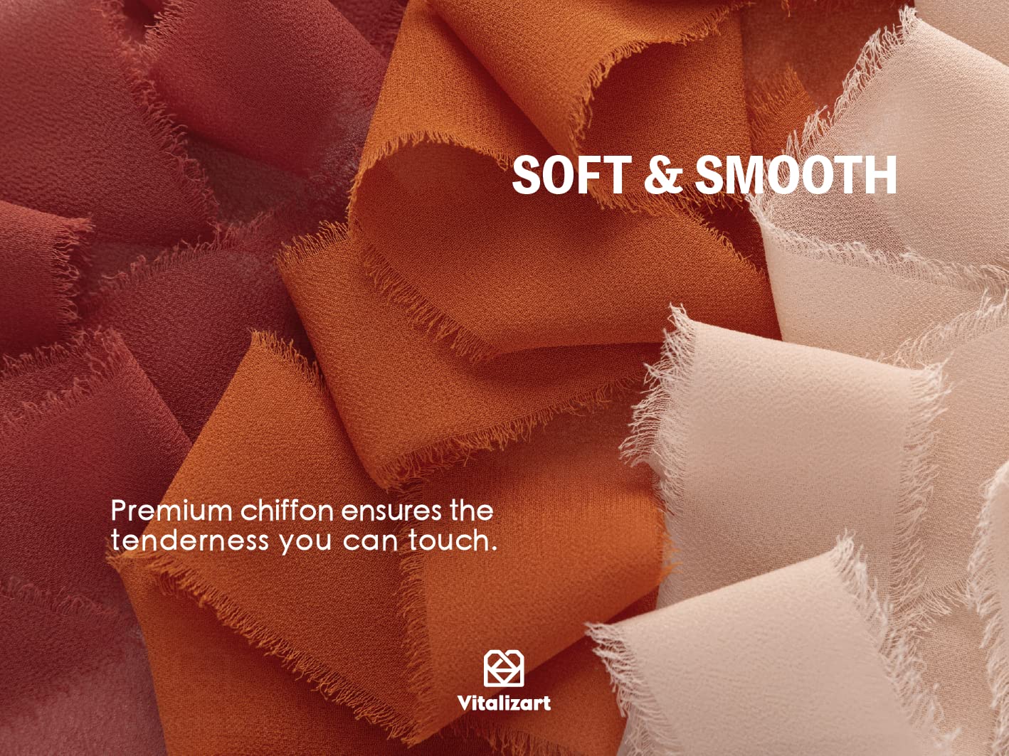 - Premium silk-like chiffon material. Very sheer, soft and easy to cut.