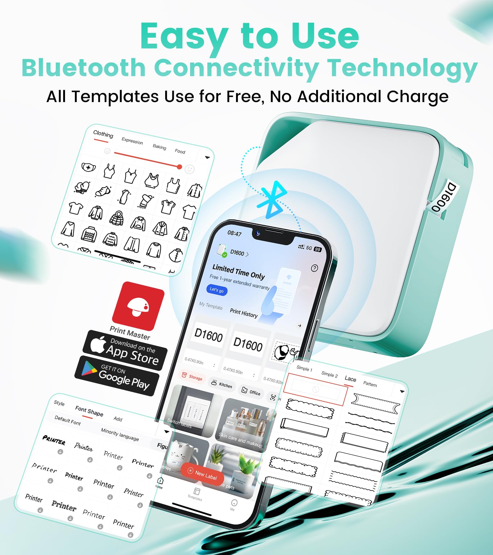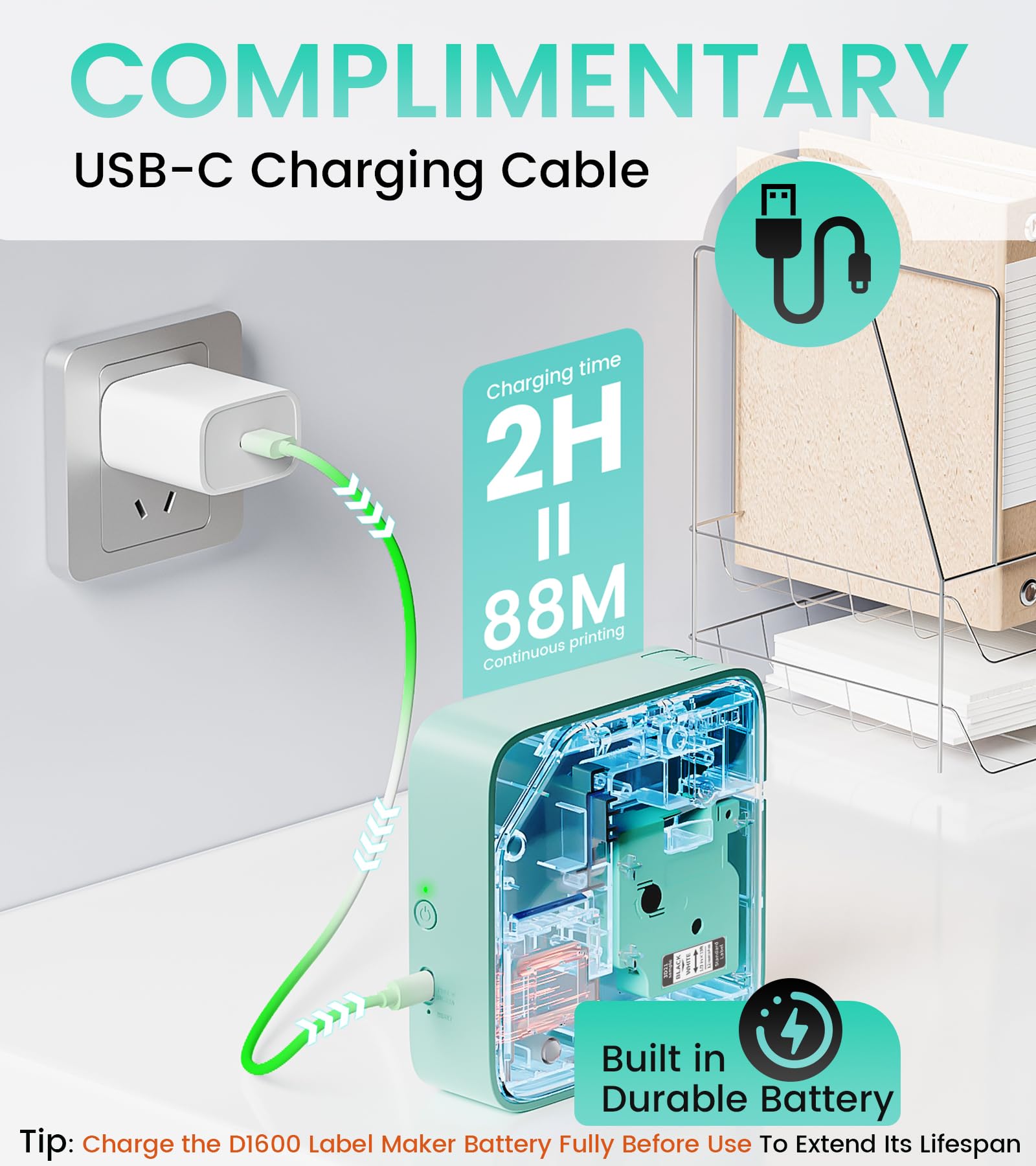 - Save money with the D1600 Label Maker Machine - The Bluetooth label maker Machine wihe Tape uses inkless printing and doesn’t require ink, toner. Additionally, there's no requirement to purchase batteries or Type-C data cables. Compared to most label makers, it offers significantly lower overall costs