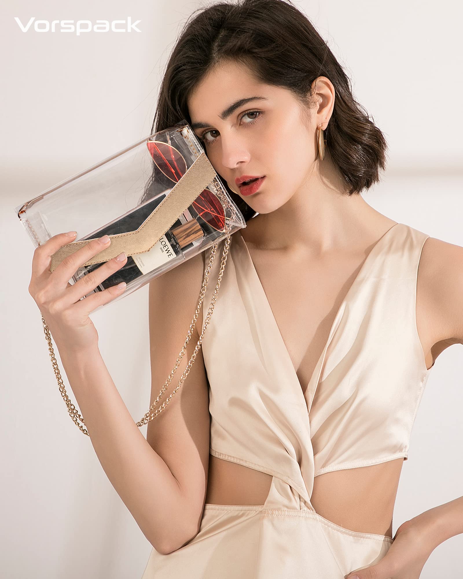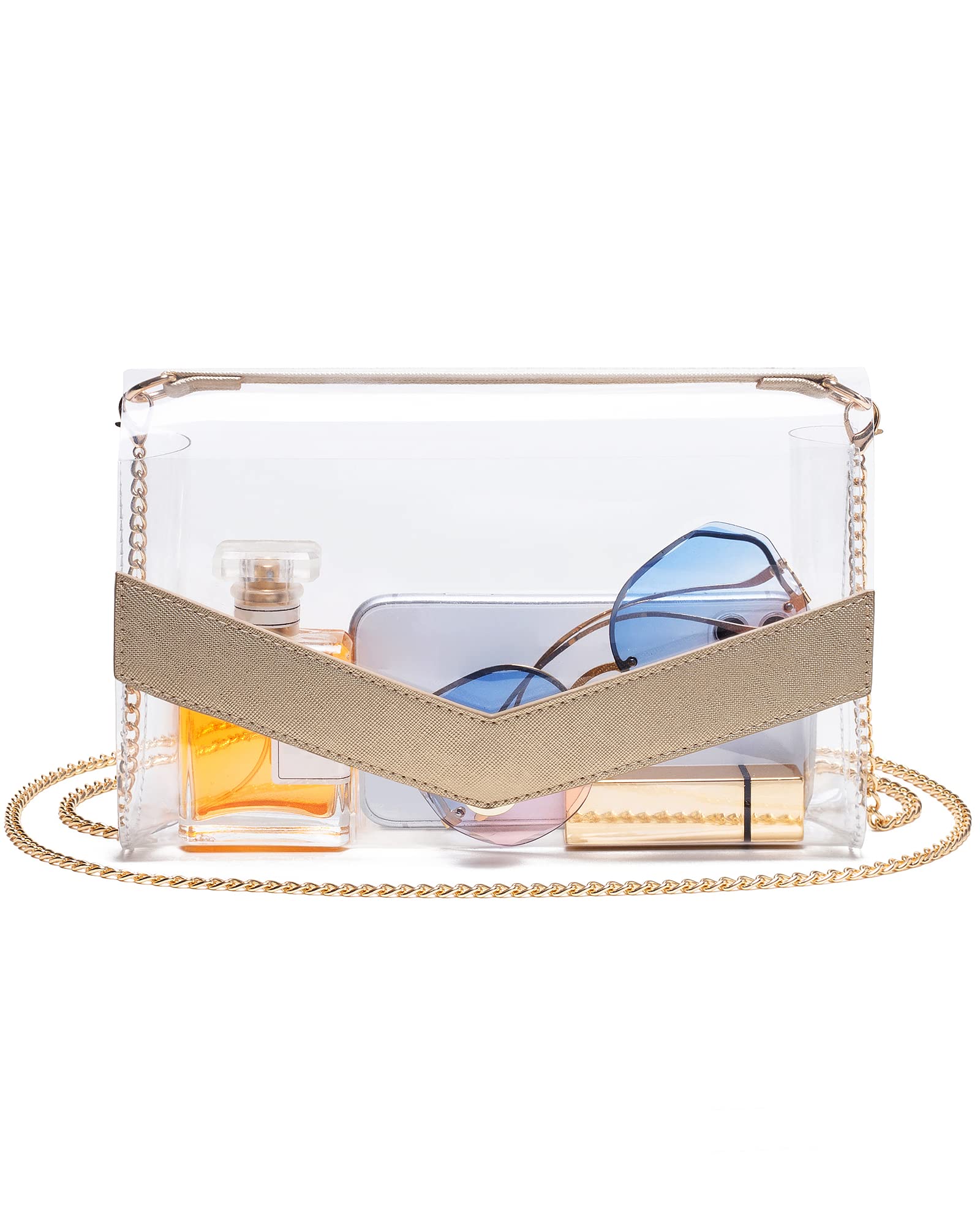 Vorspack Clear Bag Stadium Approved - Cute Clear Purse for Women PVC Clear Crossbody Bag for Sports Concert Festival - Gold