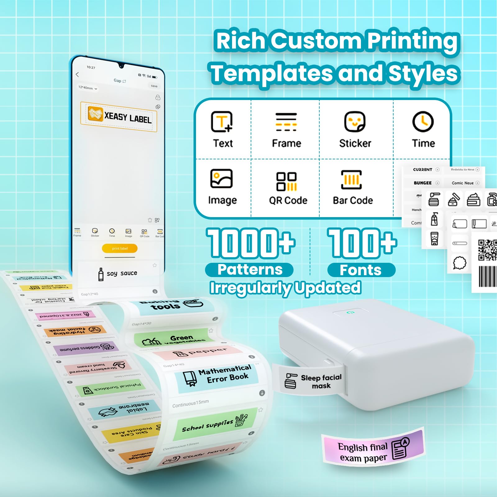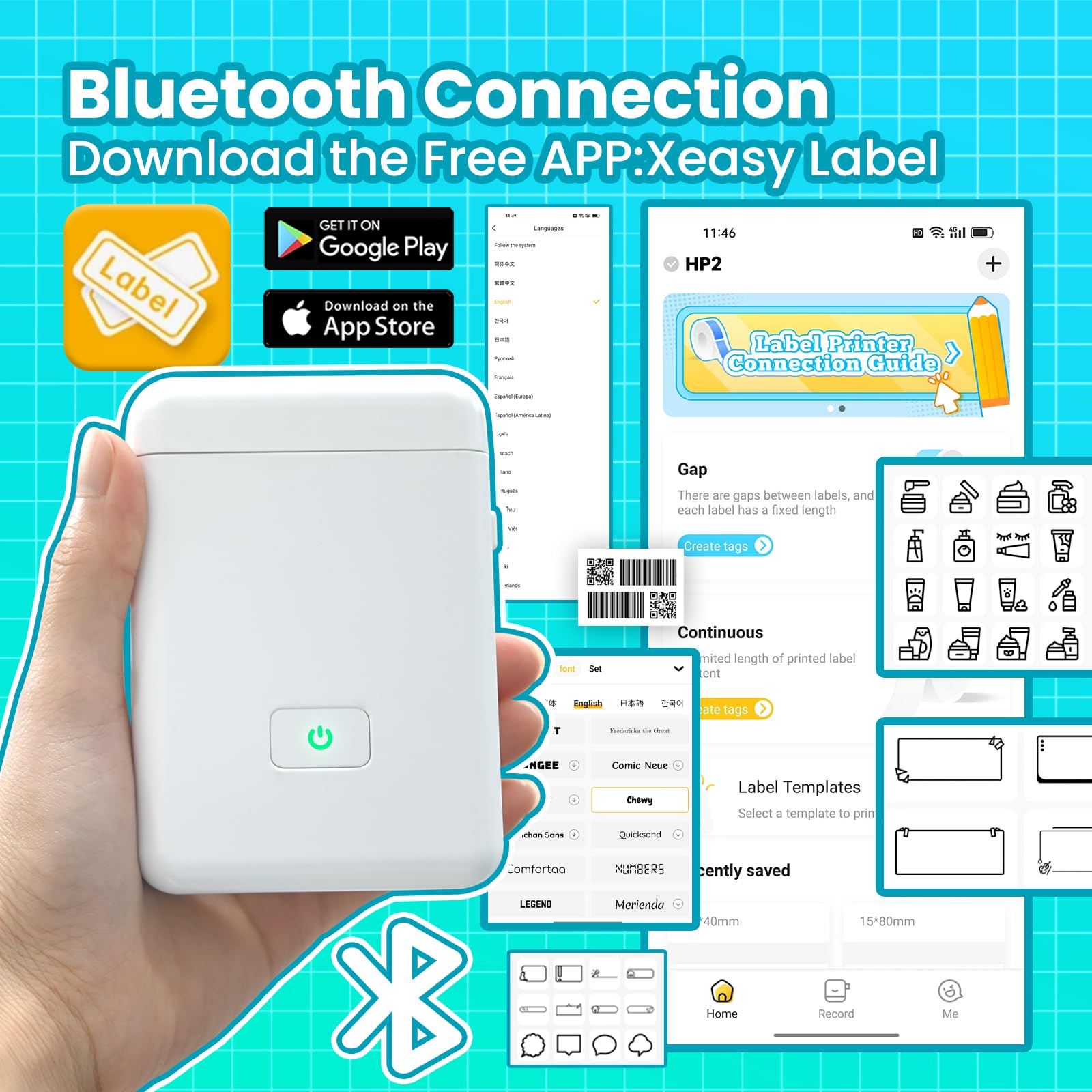 - Bluetooth Connectivity & Easy to Use-This mini Bluetooth label printer prints stickers wirelessly. Just need to download the free app, and then it is easy to create custom labels in your way. The app included more than 60 +Fonts, 12+ Languages, and 400+ Borders. And it supports iOS & Android. (NOTE: This label maker doesn't work with computers and tablet)