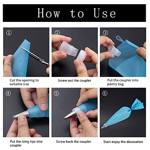 - Multiple Applications: Icing bags and tips set are perfect for making cupcakes, cakes, breads and cookies, etc. Join baking, making amazing dessert creations. Enjoy praise from your friends and family!