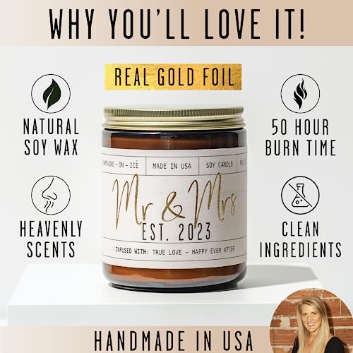 Wedding Gifts for Couples 2023, Mr and Mrs Gifts - 'Mr & Mrs Est. 2023' Candle, w/Champagne on Ice I Unique Newlywed Wedding Gifts for Couple I Wedding Shower Gifts Bride & Groom I 50Hr Burn,USA Made