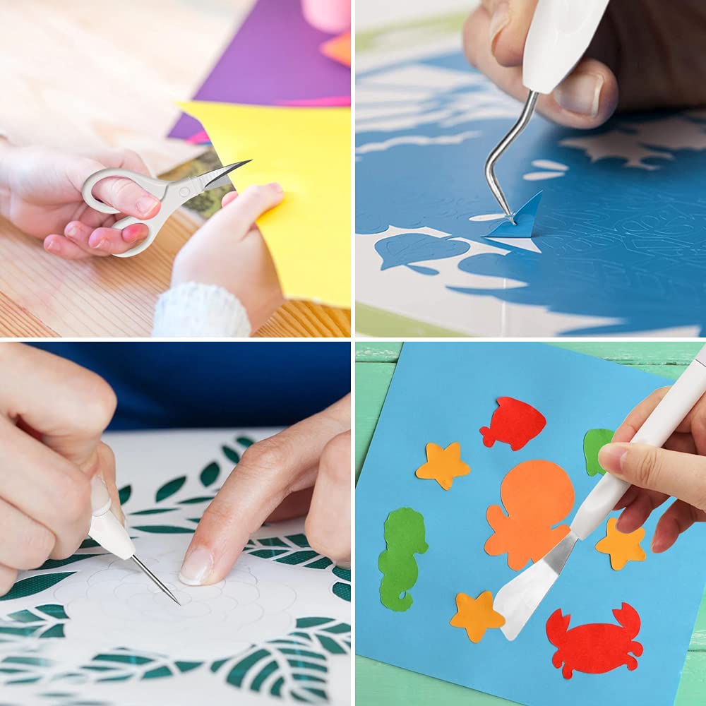 Weeding Tools for Vinyl, FineGood 8 PCS Weeding Tool Set Basic Craft Removal Kits Scissors Scraper Spatula Tweezers for Die Cut Cardstock Scrapbooking