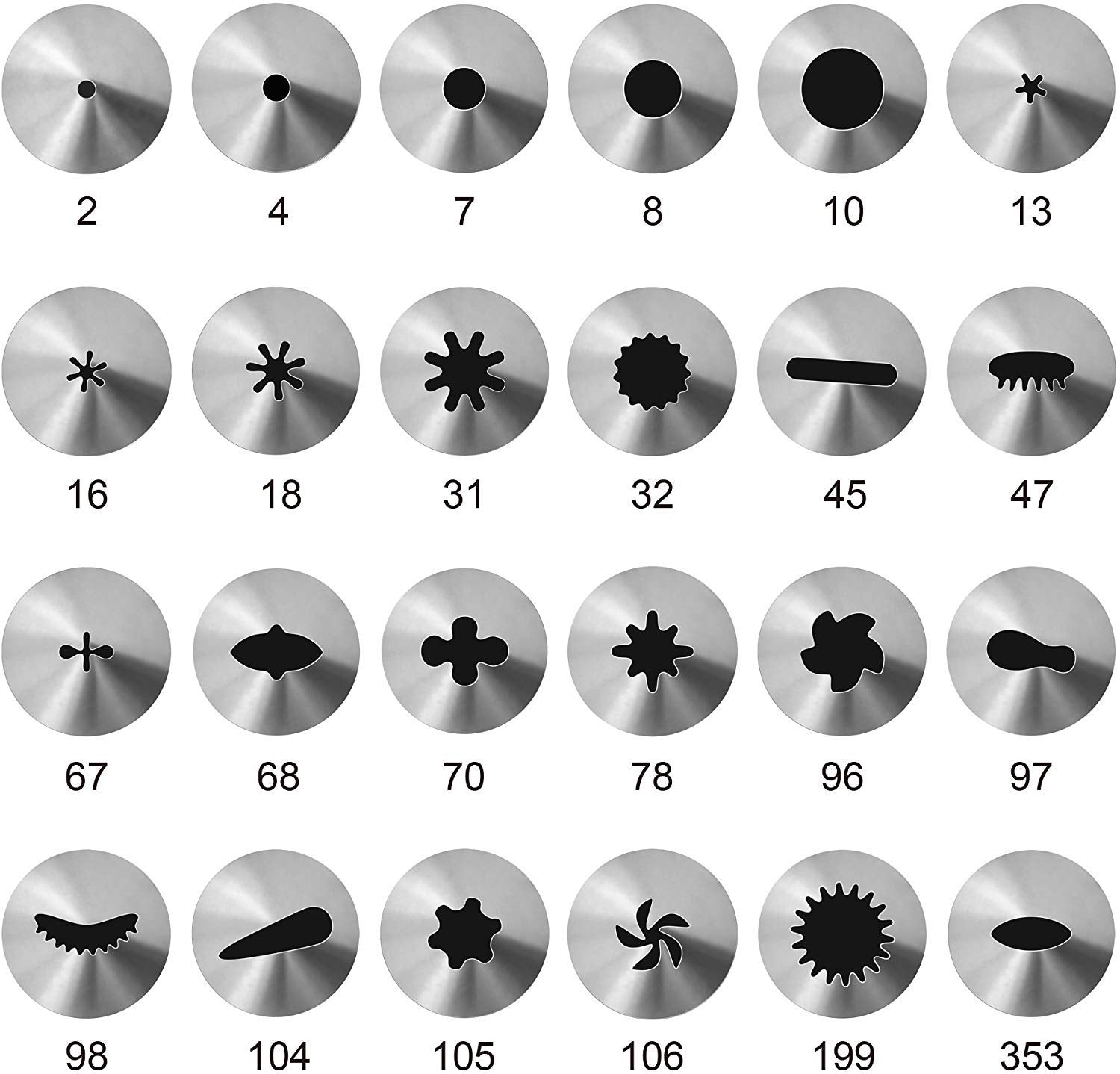 - 【Quickly Pick Out the Right Tip - Numbered Tips】:Simply glance at the number engraved on the top of each tip, you can quickly and correctly pick out the tip you want. No more need to annoyingly guess which tip might correspond to which flower pattern, just as you did with some others' tips that only show Numbers in a flower pattern chart but not on themselves!