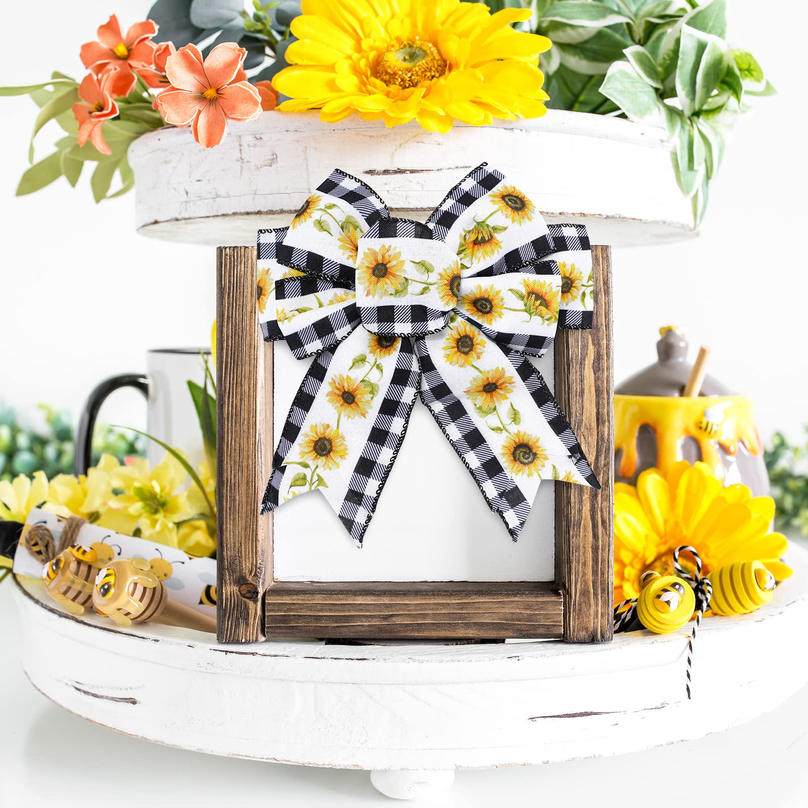 36 Yard Sunflower Wired Edge Ribbon 6 Roll 2.5 Inch Buffalo Plaids Flower Fabric Ribbon Spring Summer Floral Decorative Craft Ribbon for Gift Wrapping Decor Hair Bow Sewing Wreath Crafts