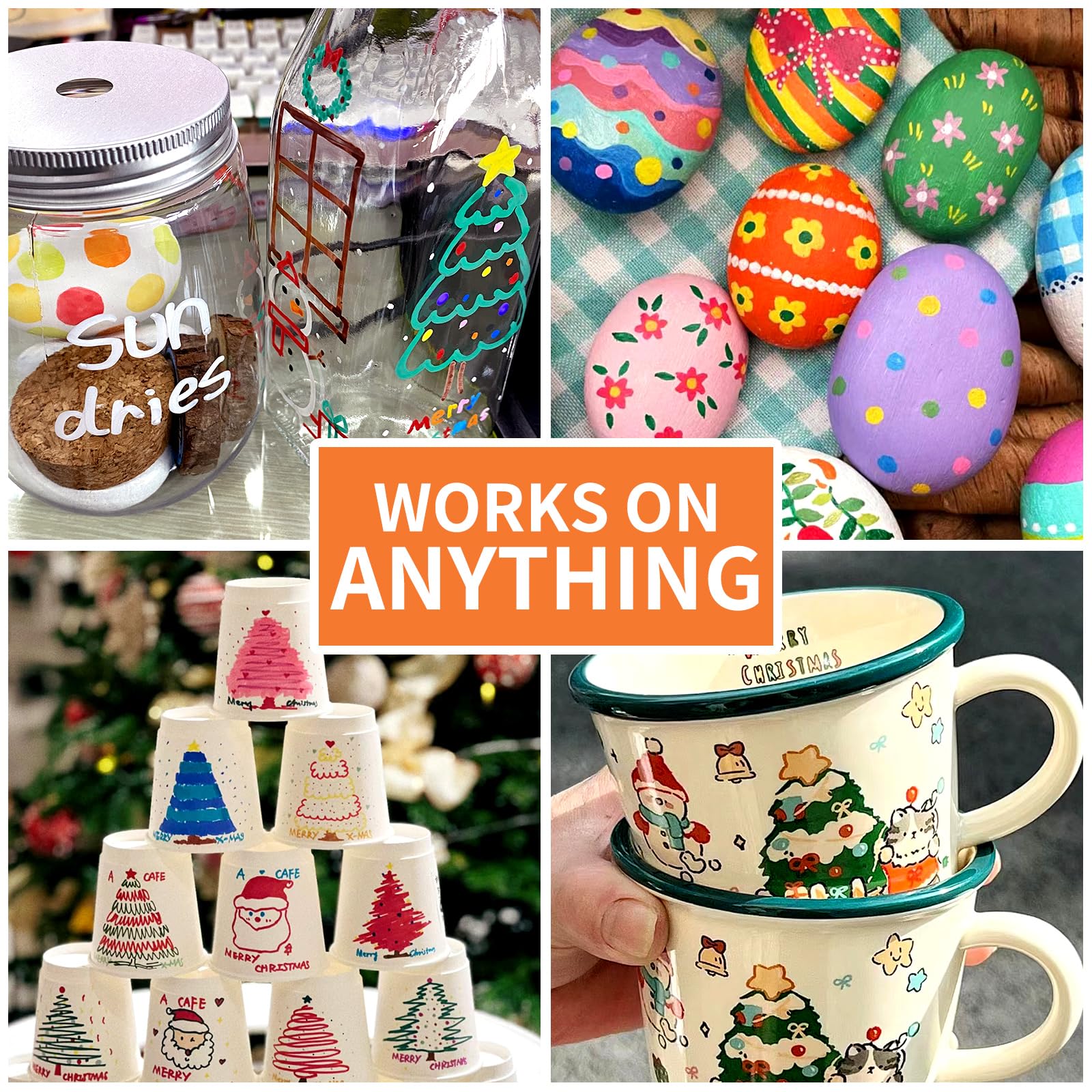 - Quick-Drying: Featuring quick-drying oil-based ink that resists water, fading and abrasion. The oil based paint pens is glossy. For Instant gratification: Get your projects completed in record time with our quick-drying markers, Drying time 45 - 60 seconds