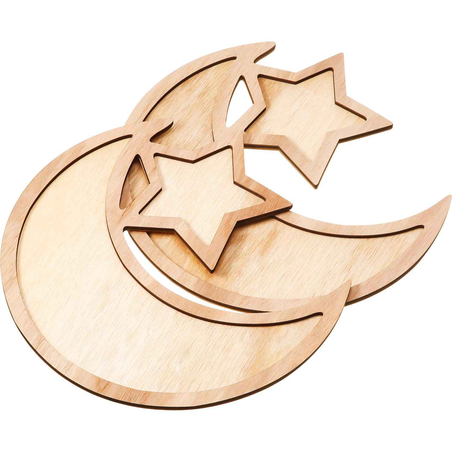 - Meet your needs: totally 2 sets of comes Ramadan wood trays are included in this package, enough to meet your daily using needs, their beautiful moon and star shape can also decorate your kitchen and home
