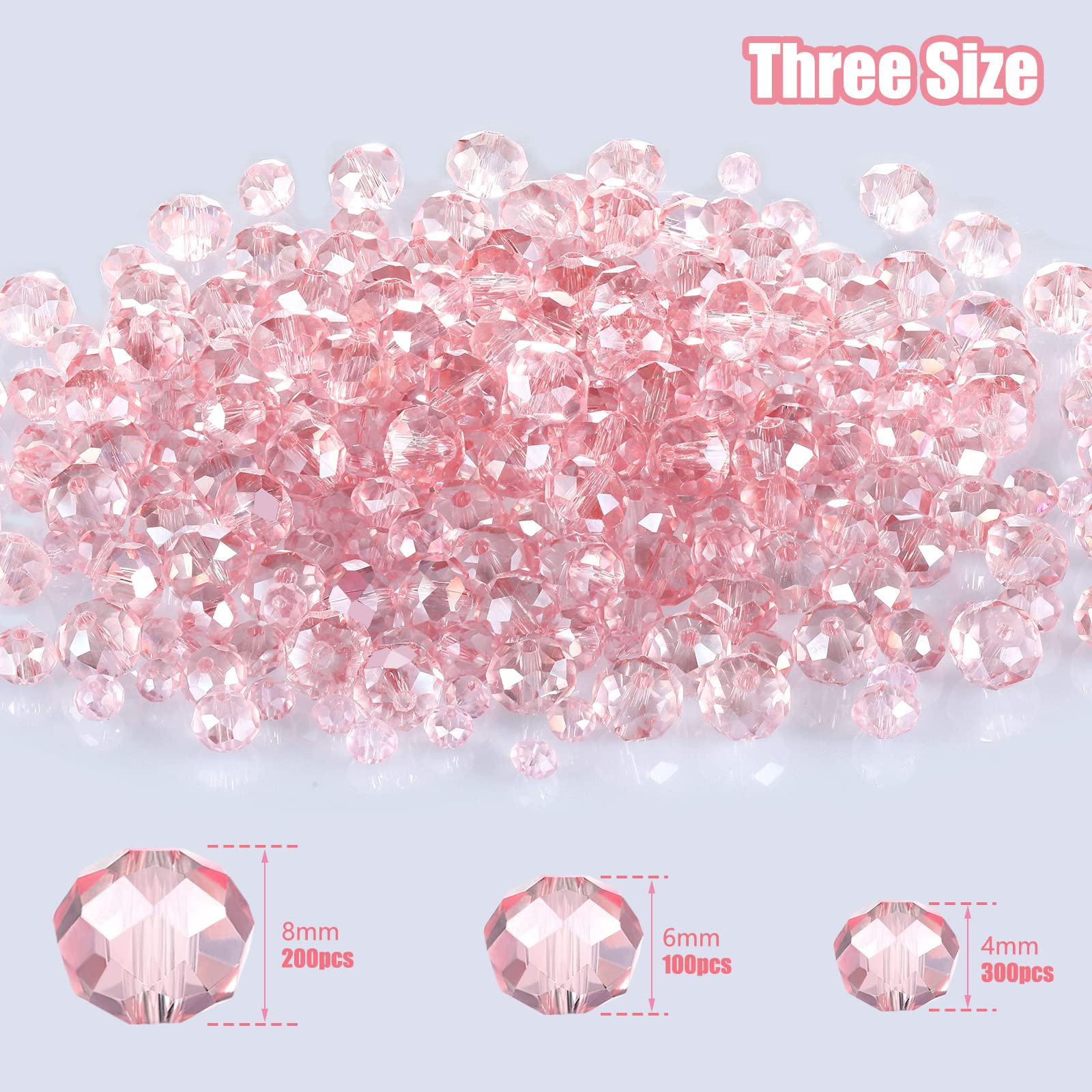 - Sufficient quantity: the package comes with 600 pieces crystal rondelle beads, containing 200 crystal beads of 8 mm (2 packs of 100 each), 100 crystal beads of 6 mm (1 packs of 100 each) and 300 crystal beads of 4 mm (2 packs of 150 each) in different sizes, various for you to choose and match according to your actual needs