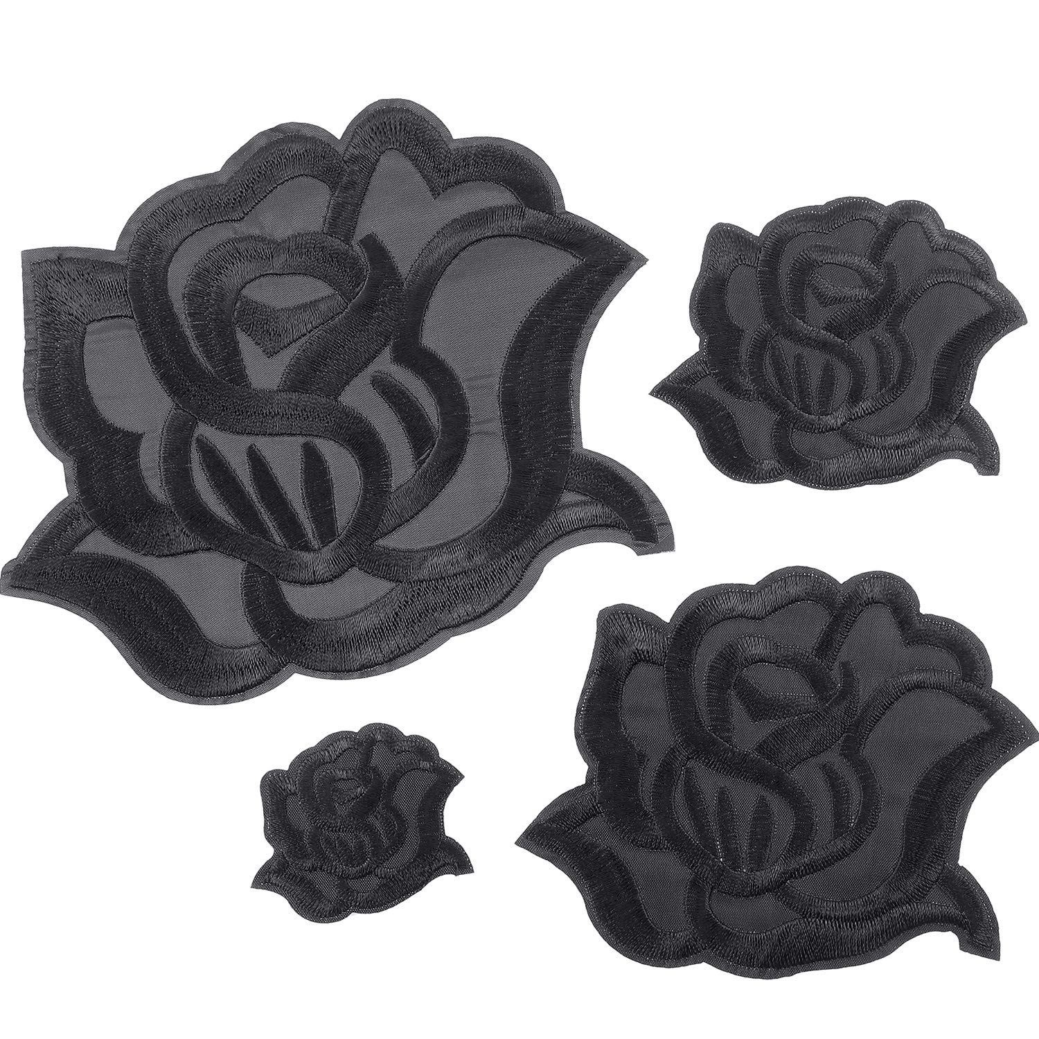 - Different sizes: you will get 8 pieces black rose flower fabric patches in 4 sizes including 1.73 x 1.49 inches, 2.95 x 2.52 inches, 3.93 x 3.34 inches, 5.35 x 4.4 inches, each size has 2 pieces, enough quantity for your clothing repairing and craft making use