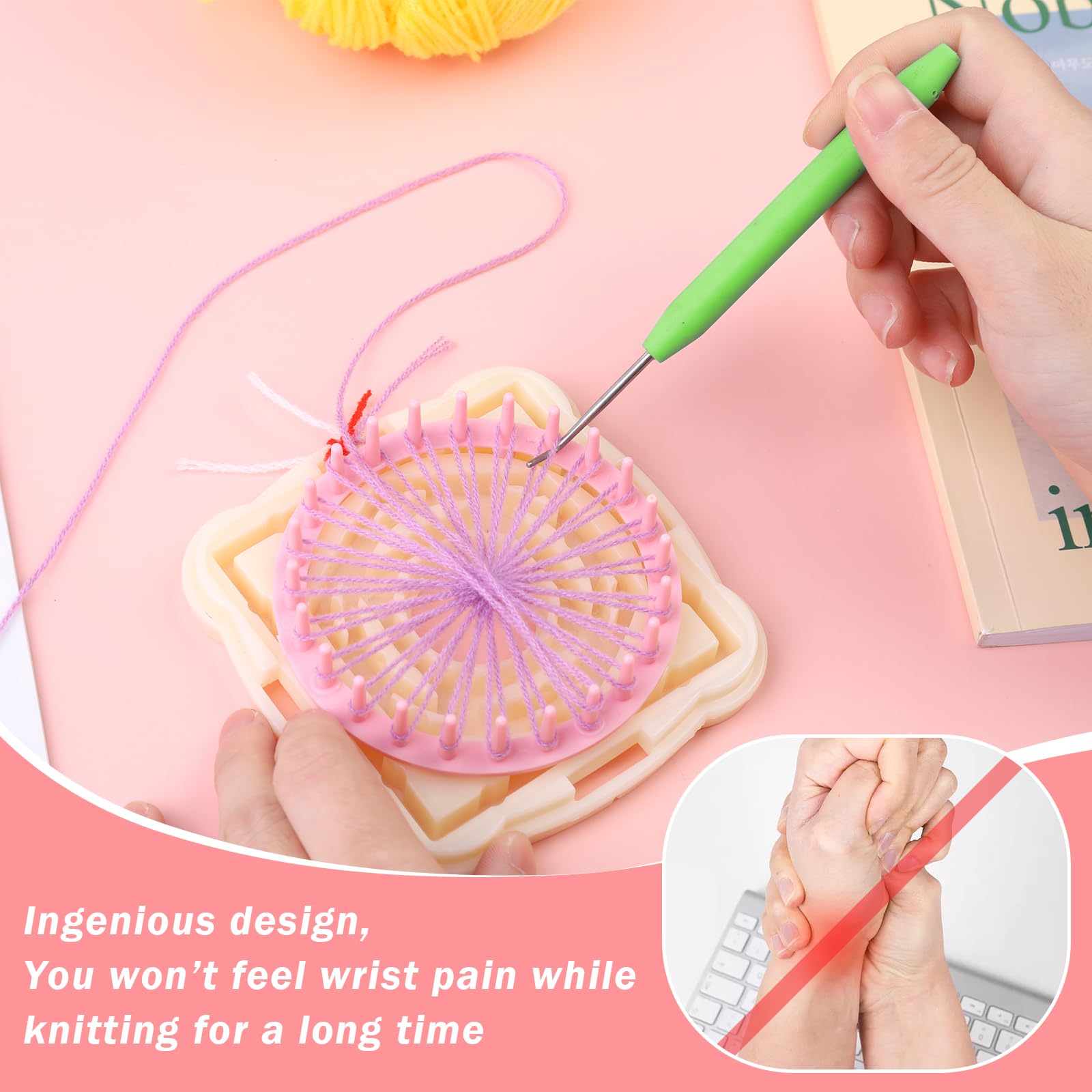 - Loom Knit Hook Kit Included: Our loom knitting hook set includes 8 pcs pink loom knitting hooks and 12 pcs plastic needles (Random colors shipped). Quantity enough for your craft weaving project