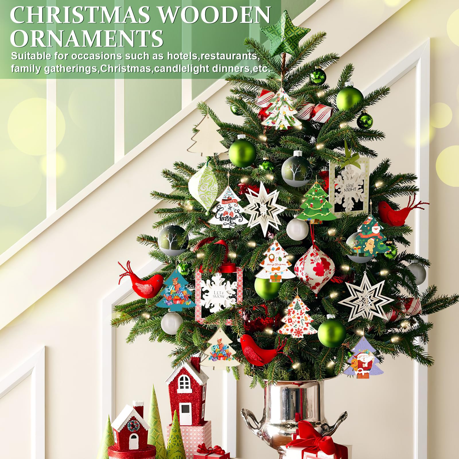 - Wide Application - these wooden ornaments are perfect for Christmas, weddings, birthdays, New Year, Halloween, Christmas, Thanksgiving, etc. The wooden ornaments will be beautiful ornaments for Christmas trees, windows, or fireplaces.