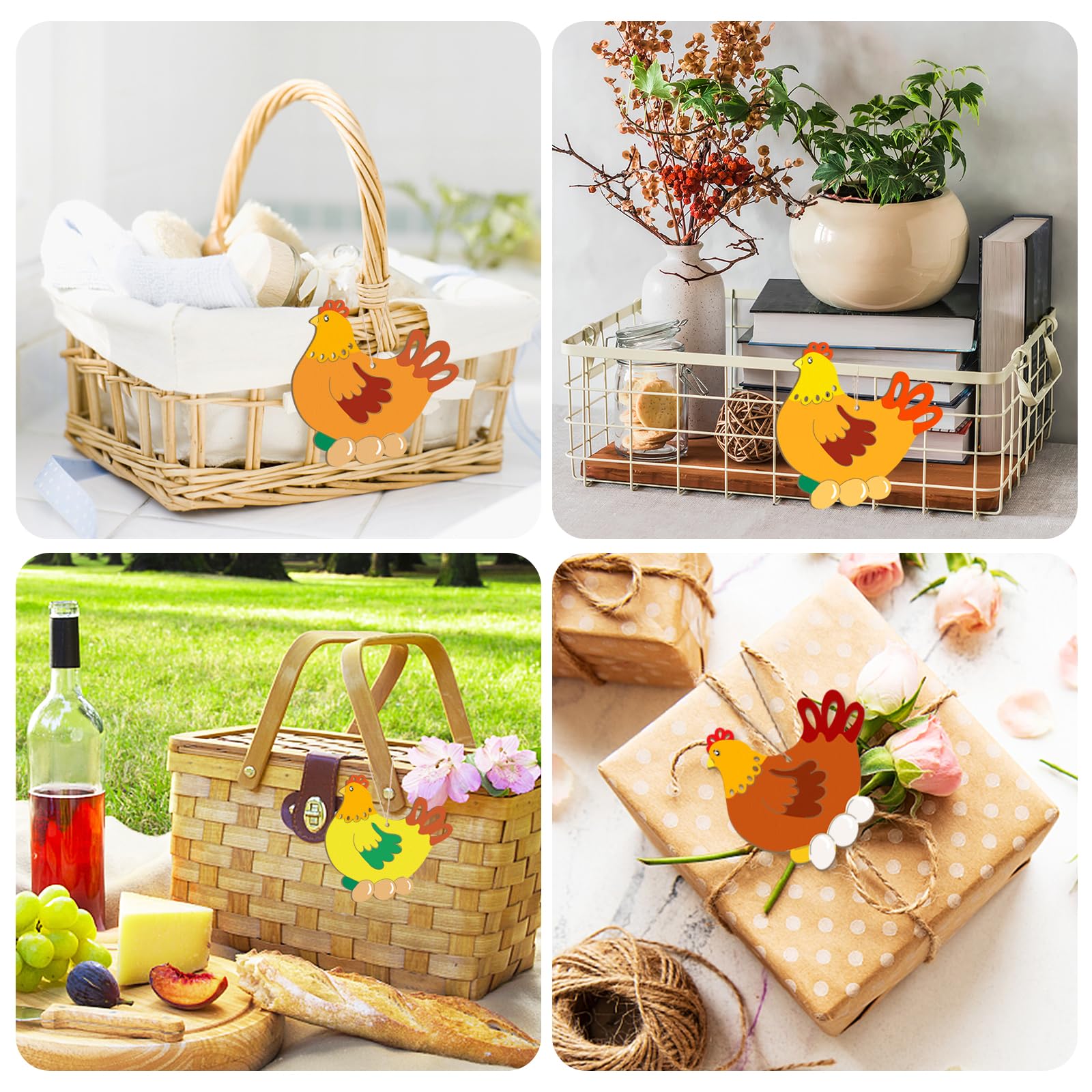 - Cute Hen Cutout- The blank wooden easter spring ornaments have a nice shape with ornament details at the top for hanging (Come with string). The blank design gives you plenty of options. Both sides are sanded to a smooth finish