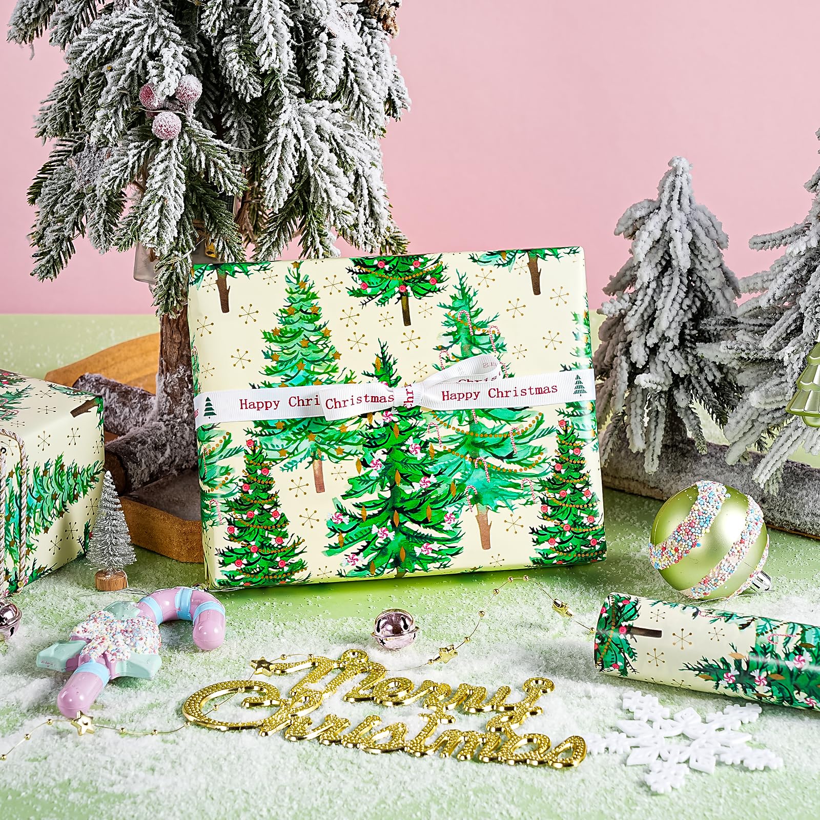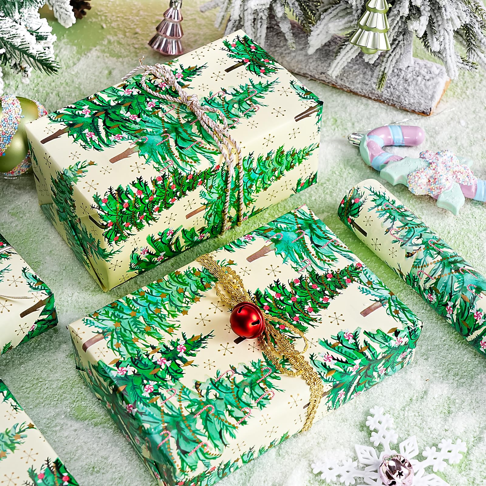 - Christmas Design: Gold print and green Christmas trees, adorned with colorful ornaments and gold snowflkes printed on cream wrapping paper, creating a warm festive atmosphere. It will make your gift - wrapping more textured, stylish, yet special.