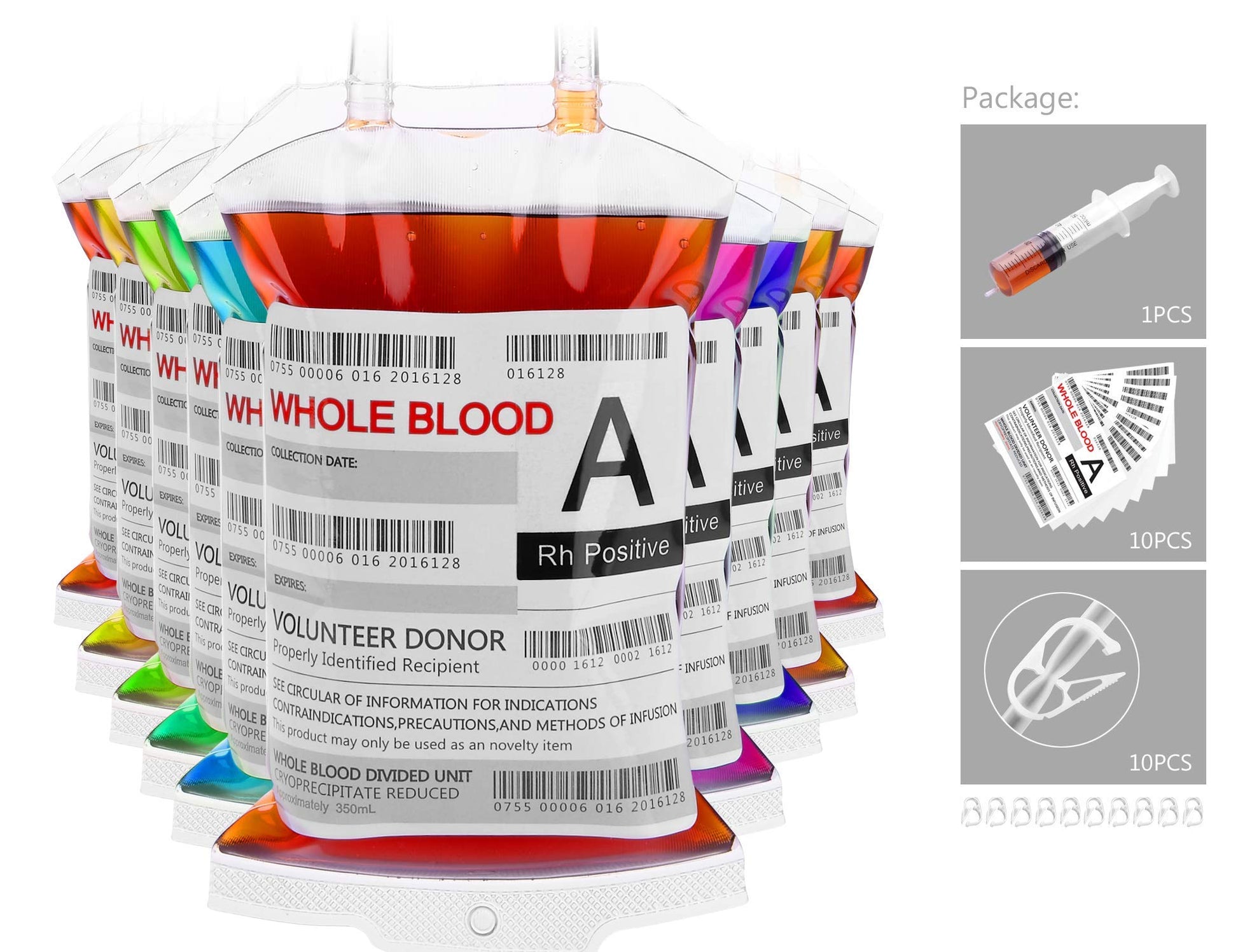 Color: 10-pack Blood Bag + 10 Labels + 10 Clips