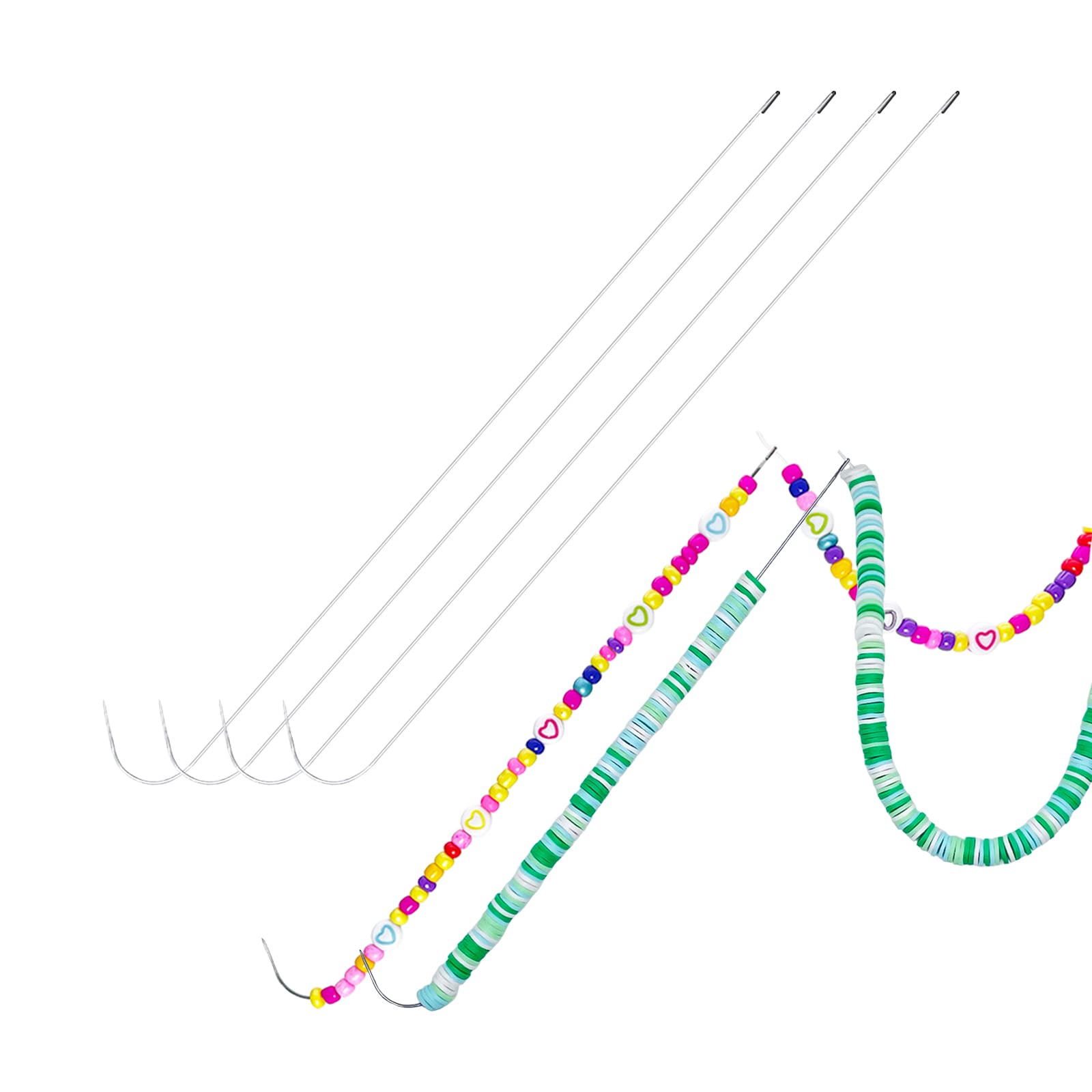 Xmada 4 PCS Beading Needles - 6.7 inches Clip-Style Beading Needles for Bead Spinner, 0.7mm Diameter, Efficient|Sturdy Beading Needles for Jewelry Making (4-Curved/0.7mm)