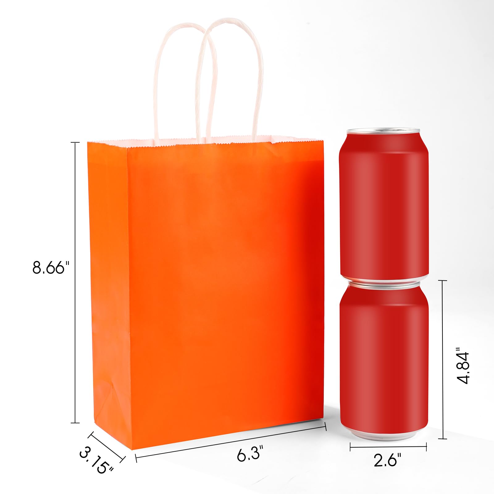 - 【SIZE-COLOR】8.66 inches high,6.3 inches long,3.15 inches wide ,3.15 inches handle(22 x 16x 8cm )Eco-friendly Kraft Paper bag.32 Packs|6 Solid Color (Red,Purple,Light Blue,Yellow,Orange,Light Green)Rainbow Bag.Easy for standing up and carrying.