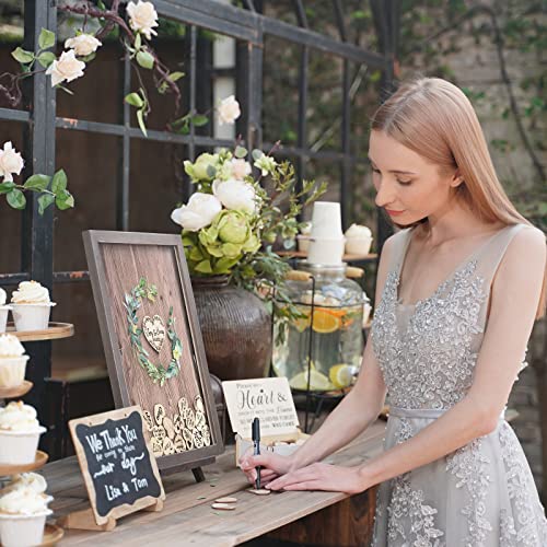 Y&K Homish Wedding Guest Book Alternative, Rustic Wedding Decorations for Reception, Favors for Guests 80 Hearts Green Wreath (Rustic Brown)