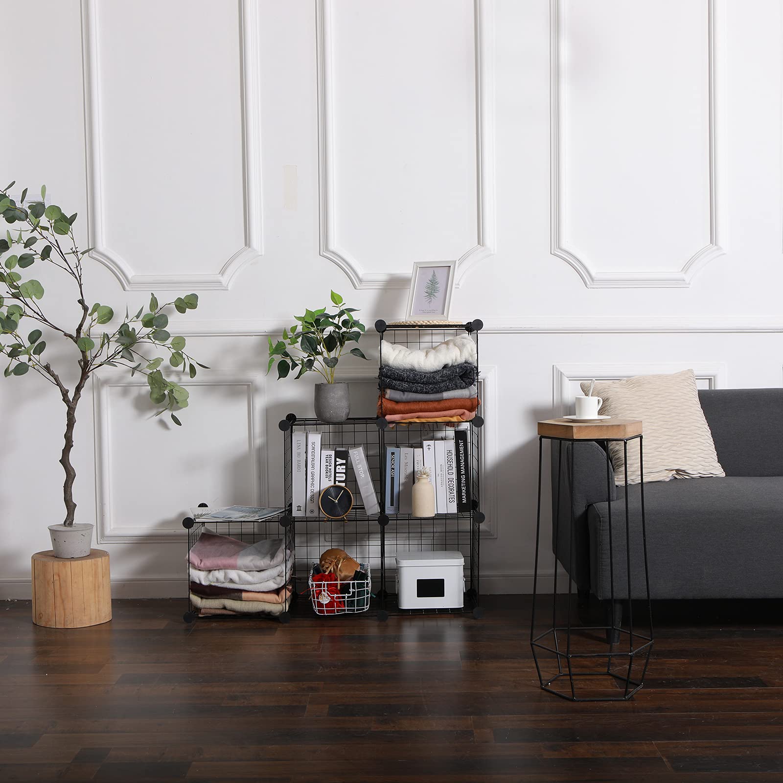 YCOCO Cube Storage Organizer,6 Cube Closet Organizers and Storage,Wire Metal Grids Bookshelf,Stackable Modular Shelves,Cube Storage Organizer Bins for Home,Office,Kids Room,Black