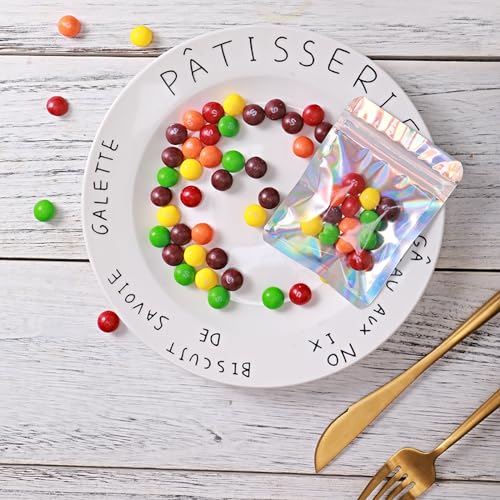 YHJZ 100 Pcs Holographic Bags, 6 x 8" Resealable Smell Proof Bags Resealable Bags for Packaging Ziplock Pouches Bags for Lip Gloss Packaging Mylar Bags for Party Favor Food Storage (6x8 Inch)
