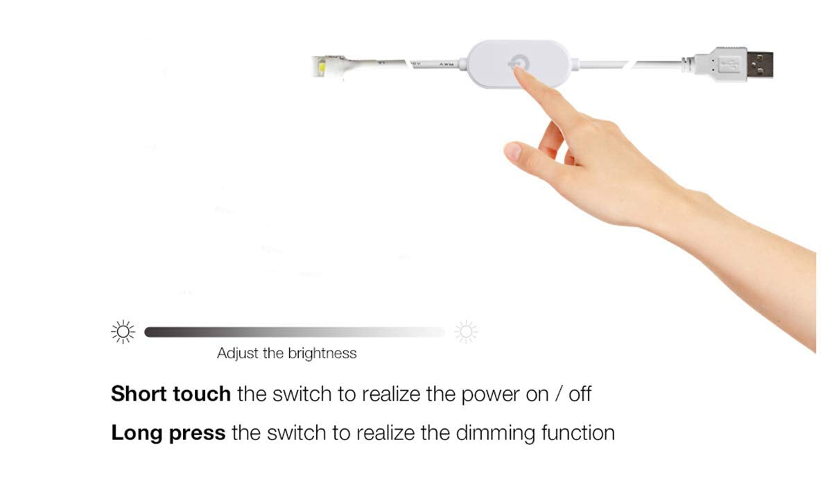 - Short touch the switch to realize the power on / off, Long press the switch to realize the dimming function.