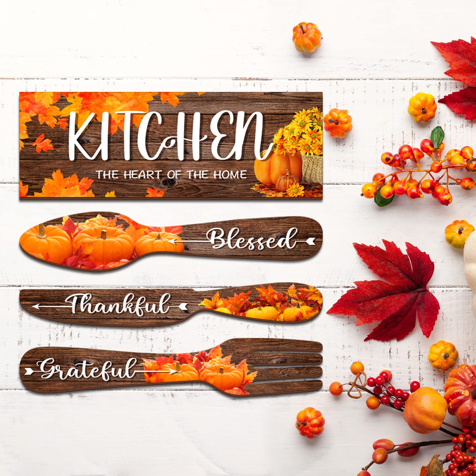 - Fall kitchen eat decor: you will be provided with 4 pieces of kitchen decorations with classic colors, in the shape of block, spoon, knife and fork, able to meet your farmhouse and modern home decoration needs, or you can share them with others