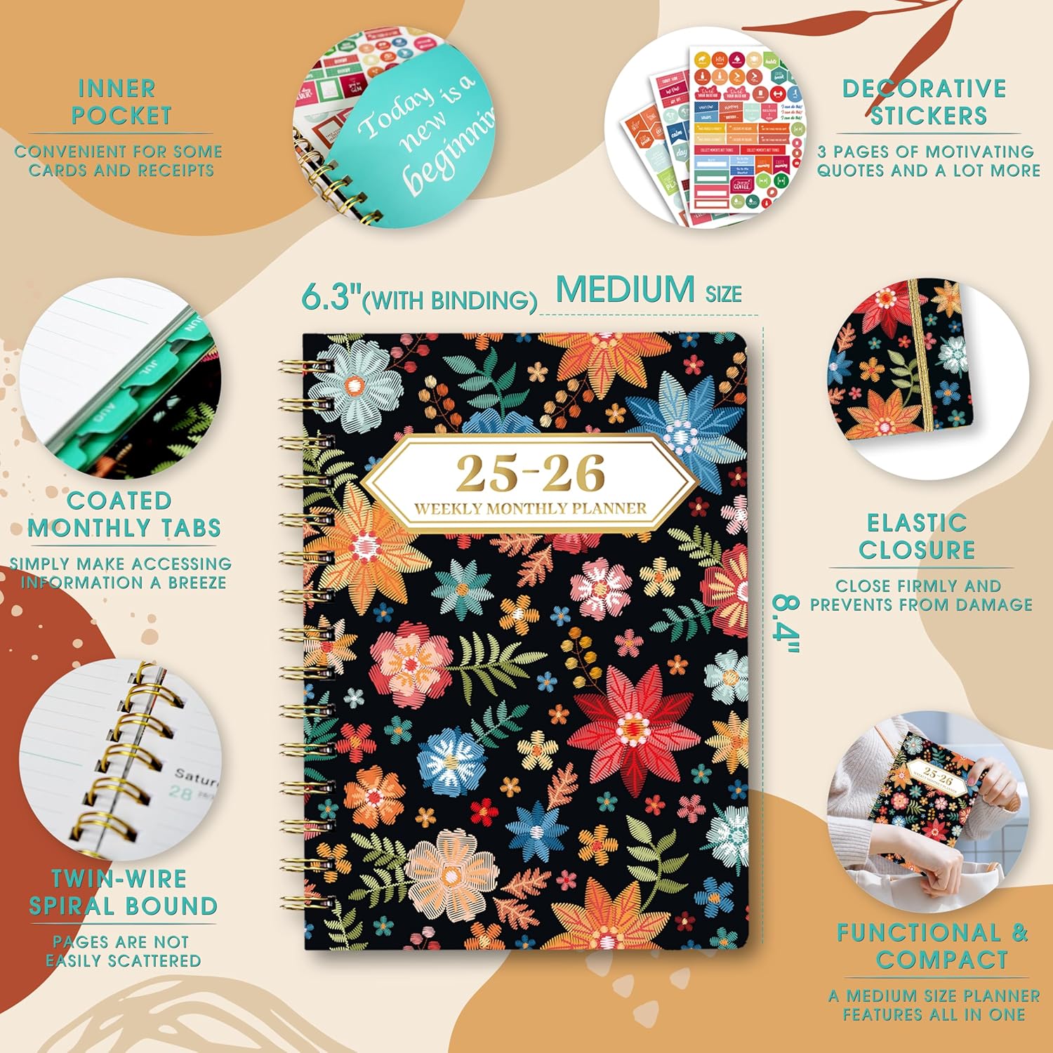 2025-2026 Planner, 12-Month Daily Weekly Monthly Planner from JUL.2025 to JUN.2026, 8.4" X 6", Spiral Notebook with Stickers, Elastic Closure, Inner Pocket for Office School Supplies