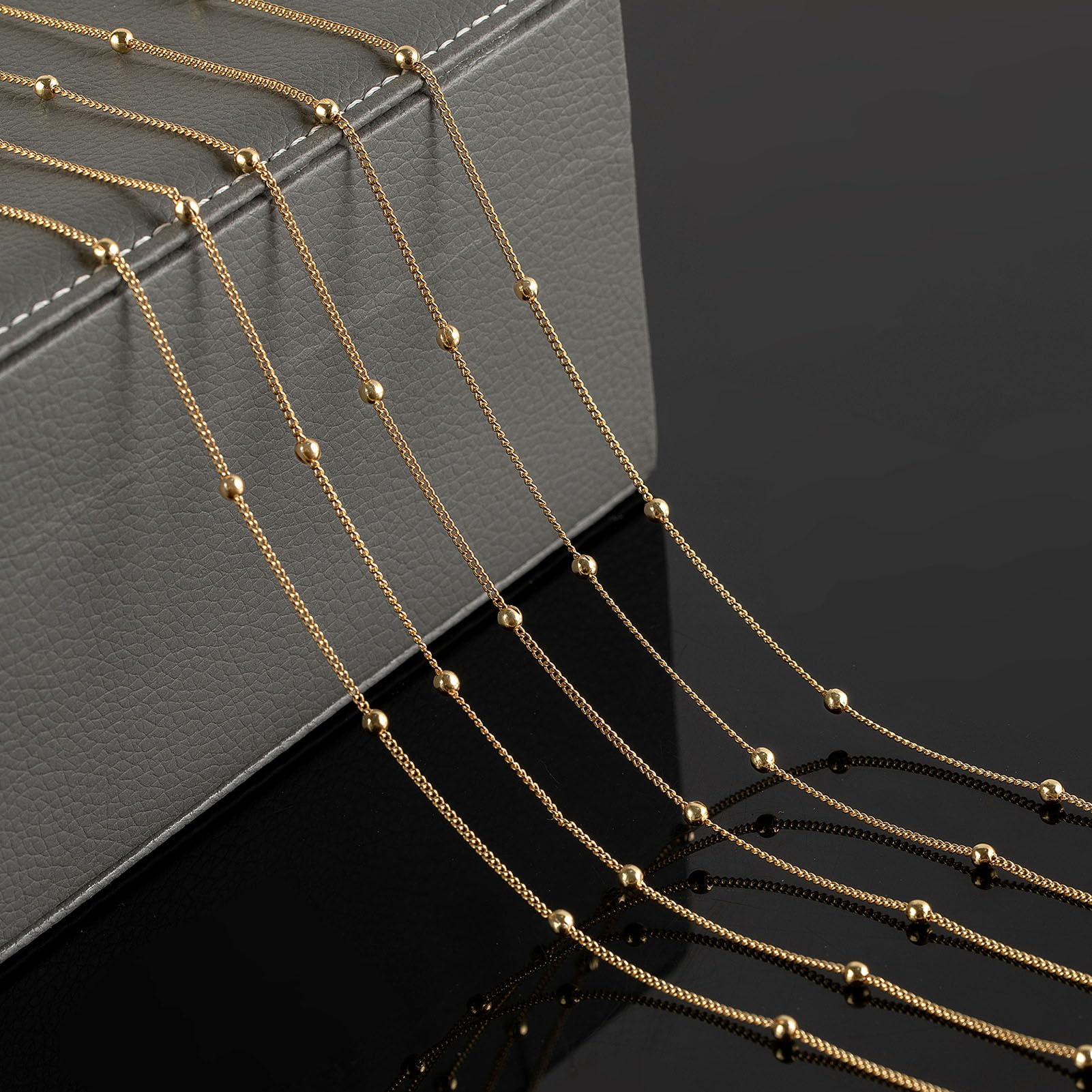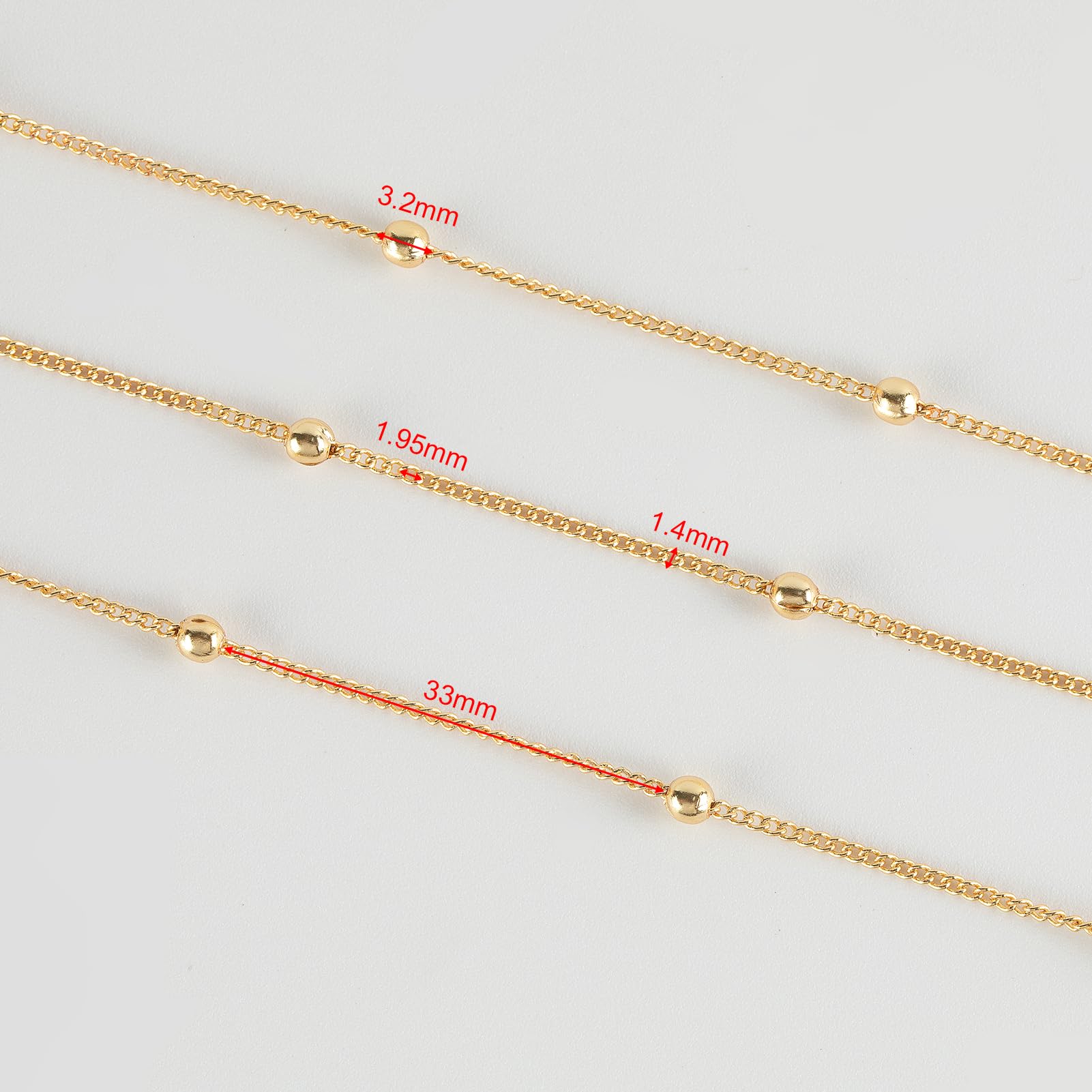 - Chain Link Size- The twist curb cuban chain link size is about 1.95mm in length, 1.4mm in width, the diameter of the beads is about 3.2mm, the length between two beads is about 33mm; the diameter of the jump ring is about 4mm; the lobster clasp length is about 10mm. The gold bead chain necklace can be worn alone or matched with other types of jewelry chains for layered necklaces, also fits with most pendants and charms well.