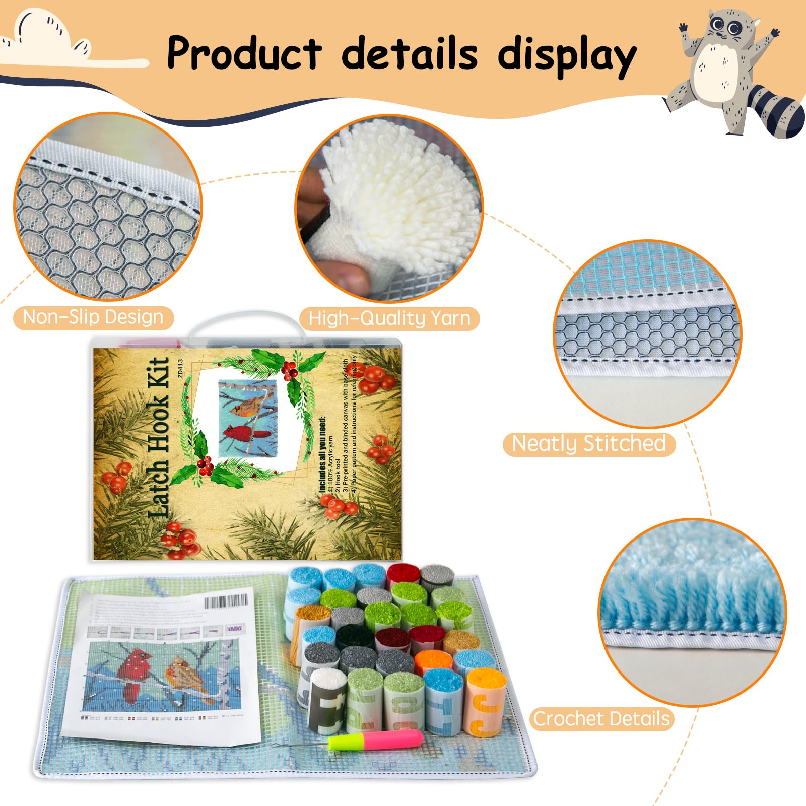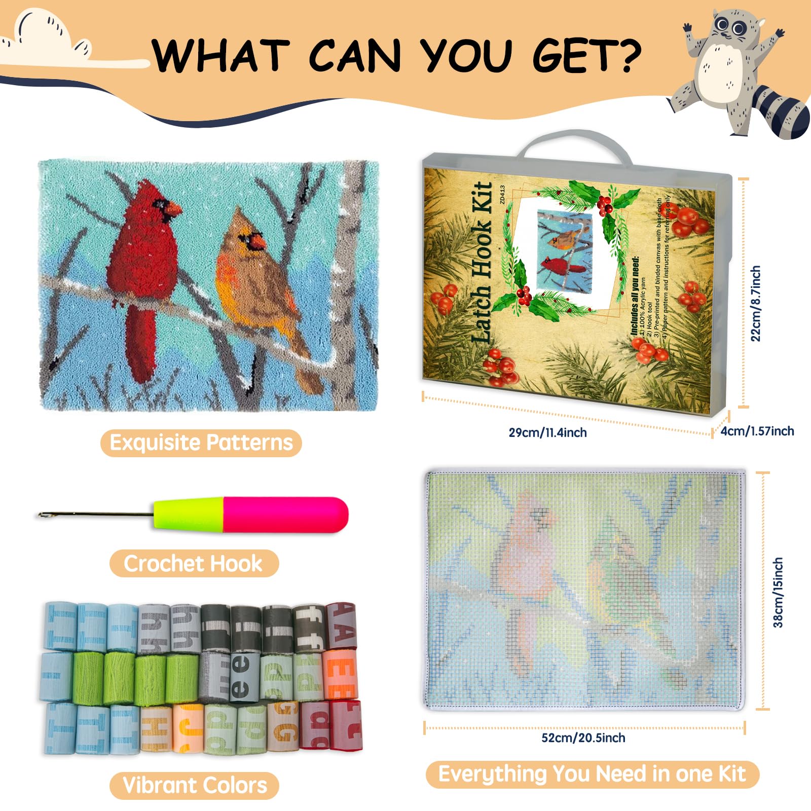 Latch Hook Kits Rug, Cardinal Crocheting Carpet Rug with Printed Canvas for Kids Adults Beginners, 20.5X15 Inch 2 - Cardinal