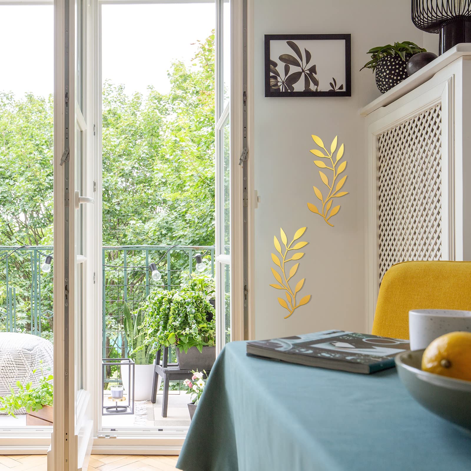 2 Pieces Metal Tree Leaf Wall Decor Vine Olive Branch Leaf Wall Art Living Room, Hallway Wall Decor Outdoor Decoration(Gold)