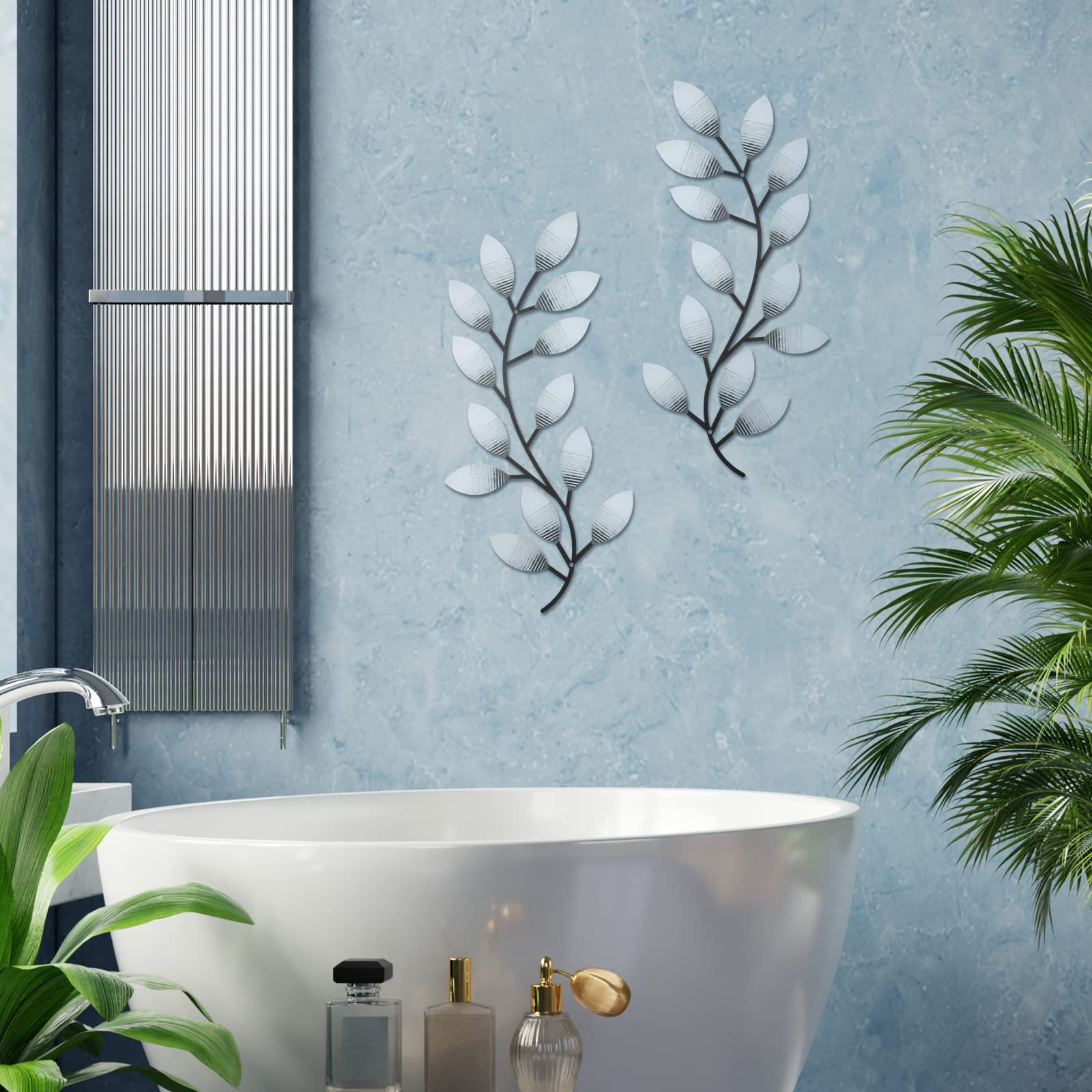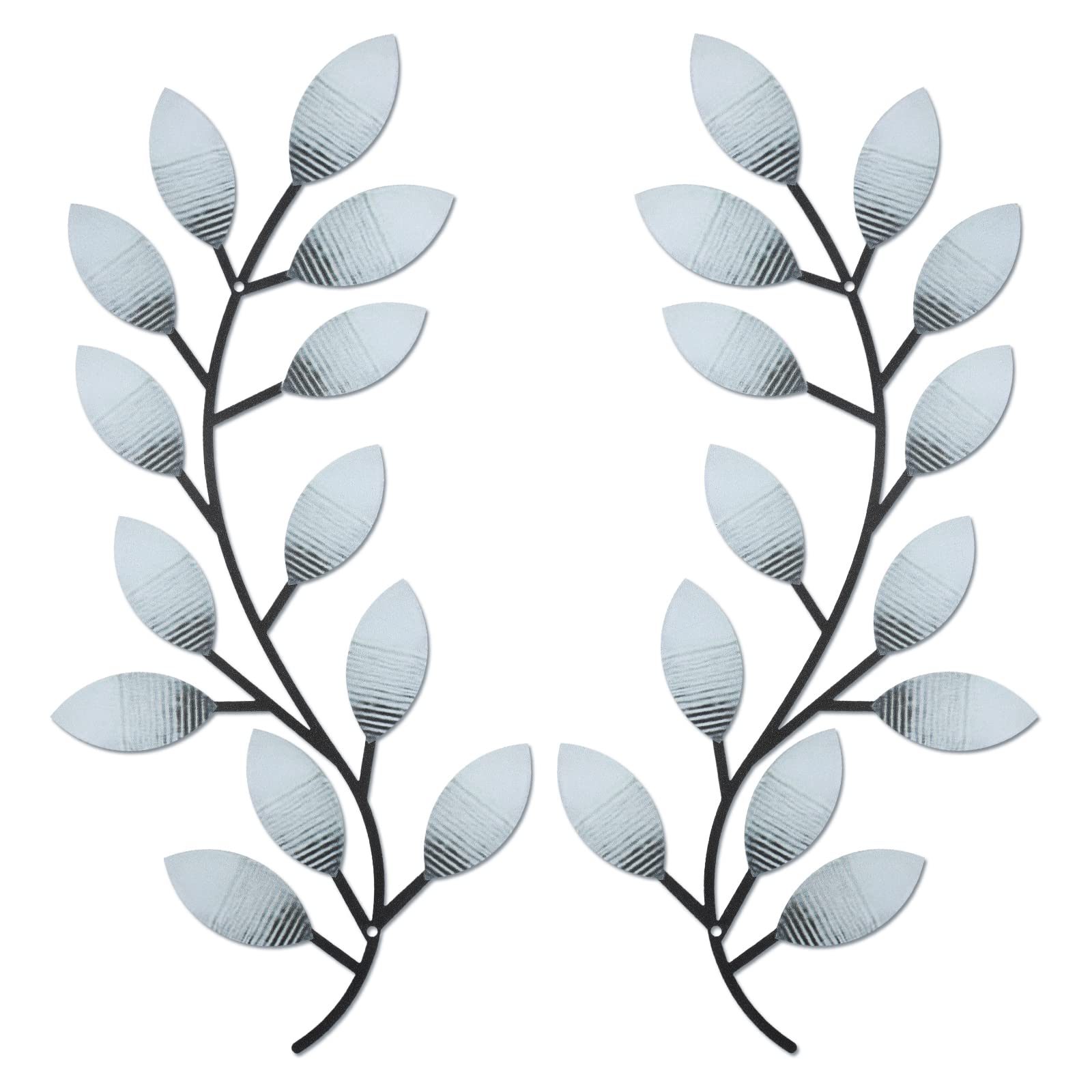 2 Pieces Metal Tree Leaf Wall Decor Vine Olive Branch Leaf Wall Art Living Room, Hallway Wall Decor Outdoor Decoration(Retro White)